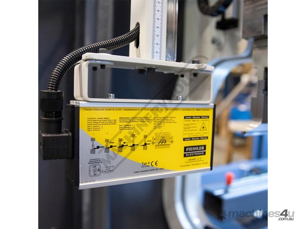 German manufactured Laser-Safe Guard System mounted at each end of machine ensuring correct interfacing and operator safety whilst in operation. Laser-safe is designed so each guard will slide up or down to allow for many different types and sizes of tooling enabling safety at the appropriate points as required by the Australian standards. Manual height adjustment with scales and lock for easy positioning.