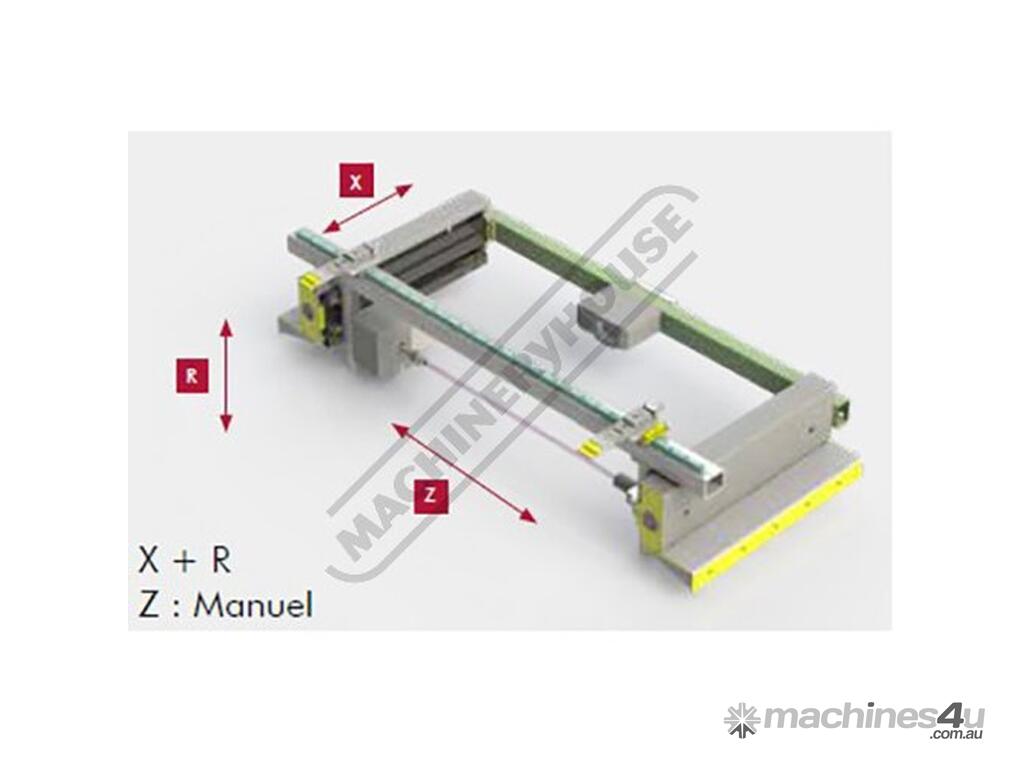 Front support arms fully adjustable mounted on linear rails x 2 off easy positioning over the complete working length of the machine