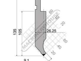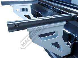 German manufactured Laser Safety Guard System mounted at each end of machine ensuring correct interfacing and operator safety whilst in operation. The Laser system is designed so each guard will slide up or down to allow for many different types and sizes of tooling enabling safety at the appropriate points as required by the Australian standards. Manual height adjustment with scales and lock for easy positioning.