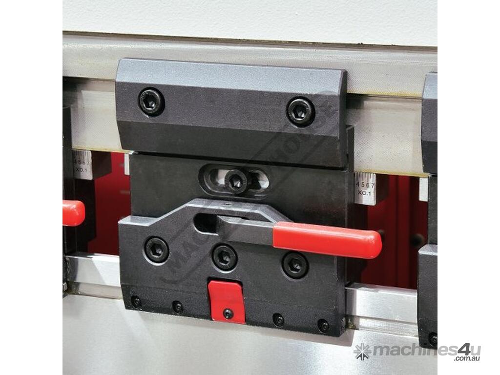 Advanced push button quick release tooling top clamps allow for the top tooling to be removed from the front of the clamp rather than sliding all of the tooling left & or right this saves time and ensures you are not shifting all your tooling just to change 1 piece.