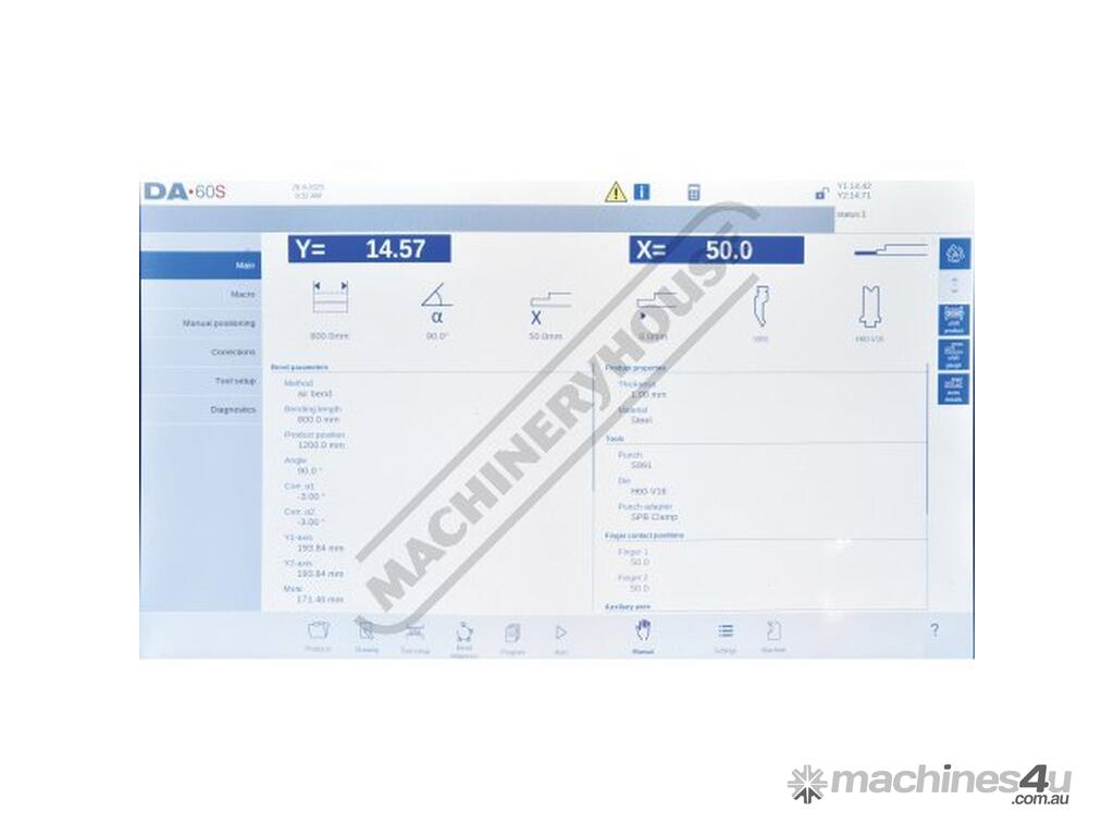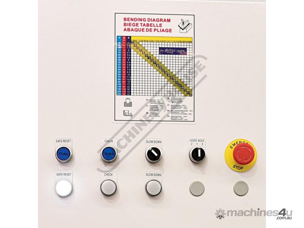 At the heart of the electrical system is the Italian made MCS safety control module which controls & monitors all pressbrake functionality, the MCS provides dual monitoring & closed loop feedback for all critical safety functions such as Hydraulic valves, Emergency stop circuits, doors, guards, foot pedal, DSP lasers to name a few functions. This ensures the machinery to be Compliant with AS/NZS 4024.1 – 2019 Safety of Machinery Series