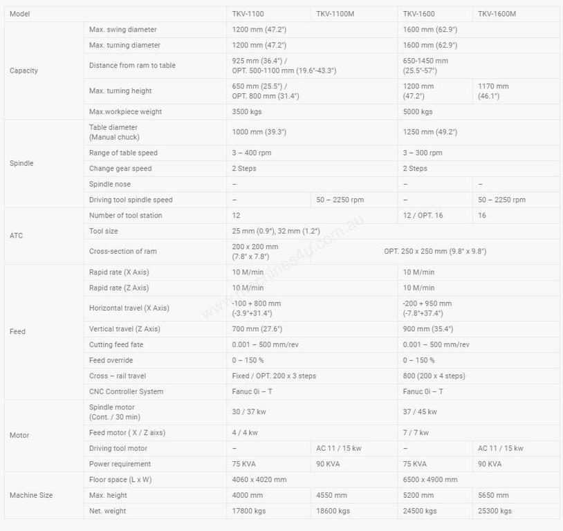 Model TKV-1100 TKV-1100M TKV-1600 TKV-1600M