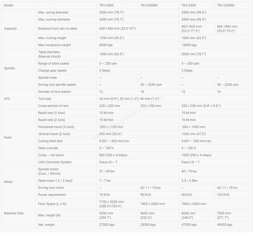 Max.workpiece weight 3500 kgs 5000 kgs