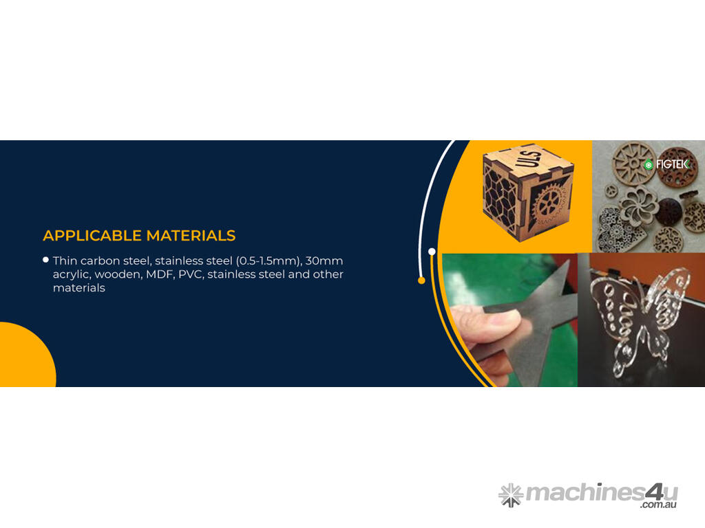 Thin carbon steel, stainless steel (0.5-1.5mm), 30mm acrylic, wooden, MDF, PVC, Stainless steel and other materials.