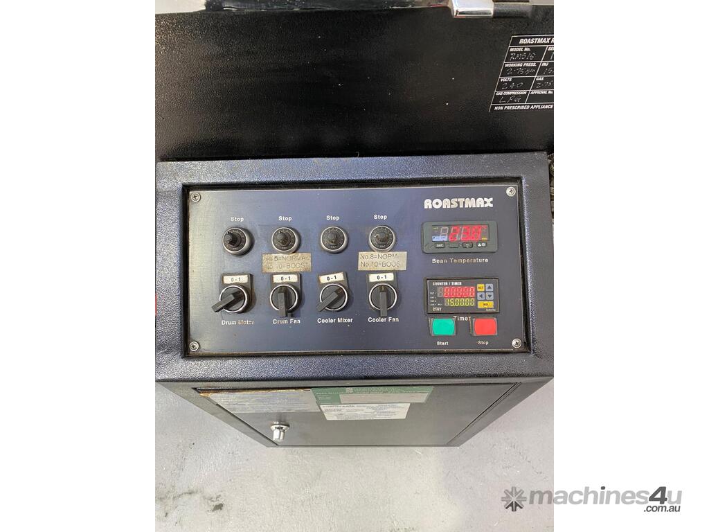 This machine is used and manufactured by Roastmax Coffee Bean Roaster and Grinder, model ZU12. It offers flexibility for businesses wanting to roast coffee in-house, improving cost efficiency while maintaining quality control.