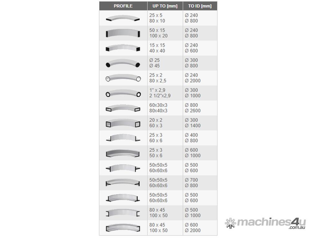 - Bending capacity: pipe up to 4"; angle up to 80x80 mm (3"x3")