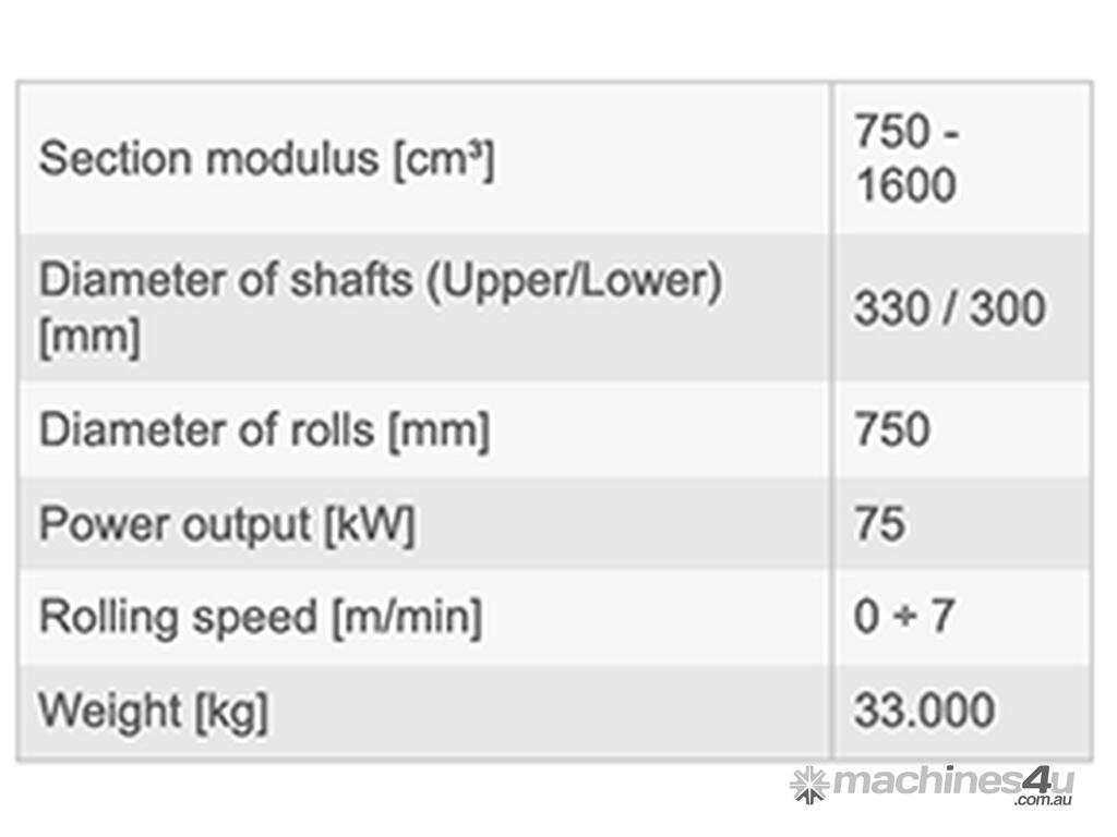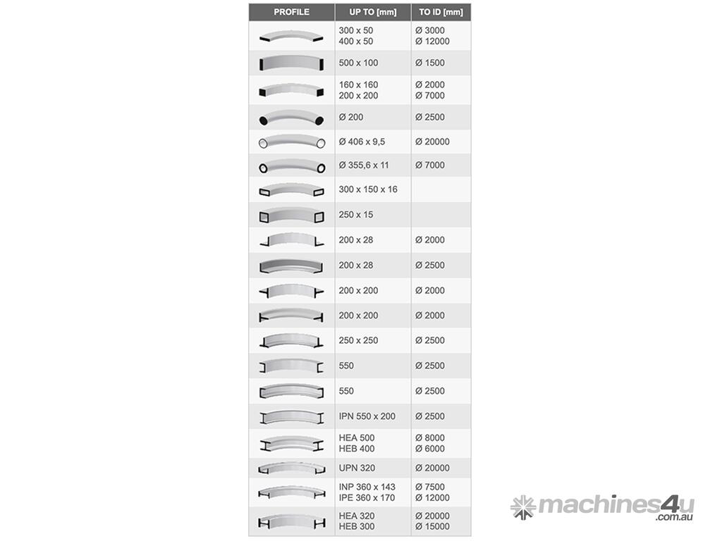 * Bending rolls independently adjustable, for double pre-bending capability on the leading and trailing end of symmetrical profiles