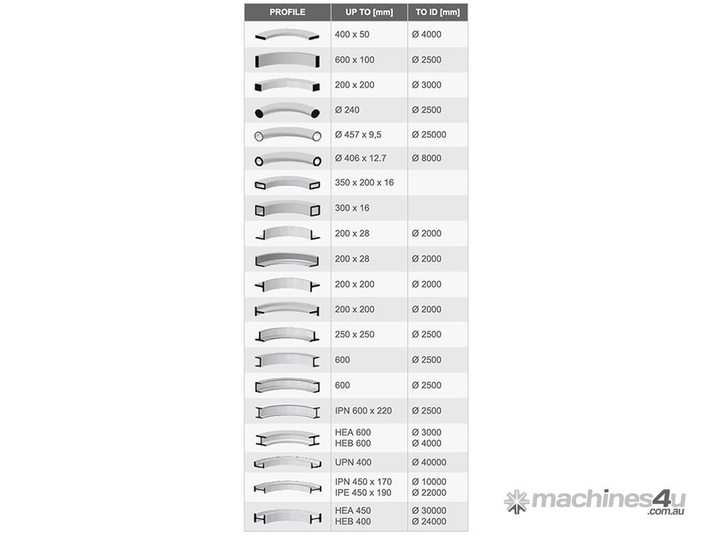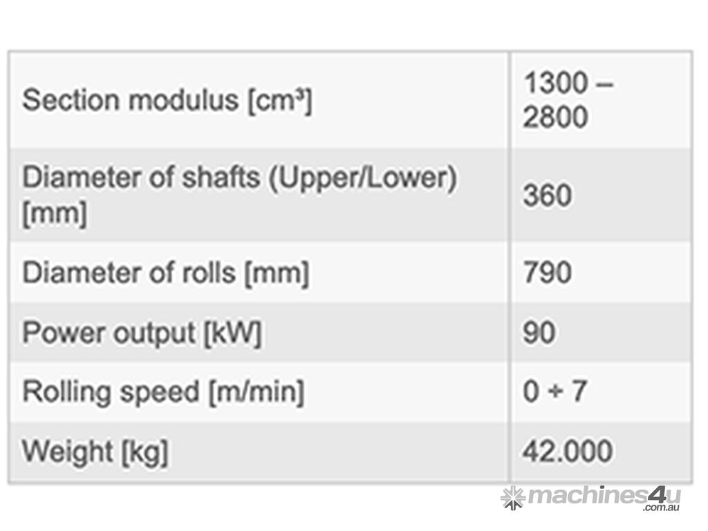 * Bending rolls independently adjustable, for double pre-bending capability on the leading and trailing end of symmetrical profiles