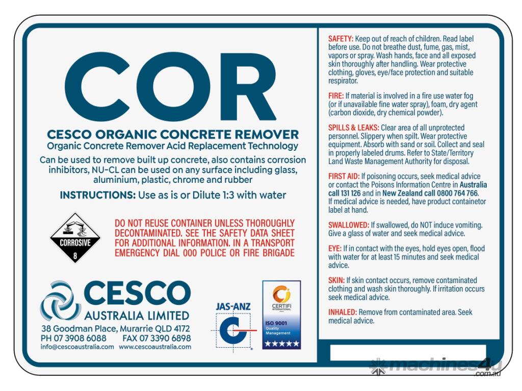 Join us as we revolutionize concrete cleaning with COR – Cesco Organic concrete Remover. Experience the difference firsthand and elevate your maintenance routine to new heights. Cesco Australia Ltd is proud to lead the way in innovative solutions for a cleaner, safer future.