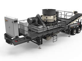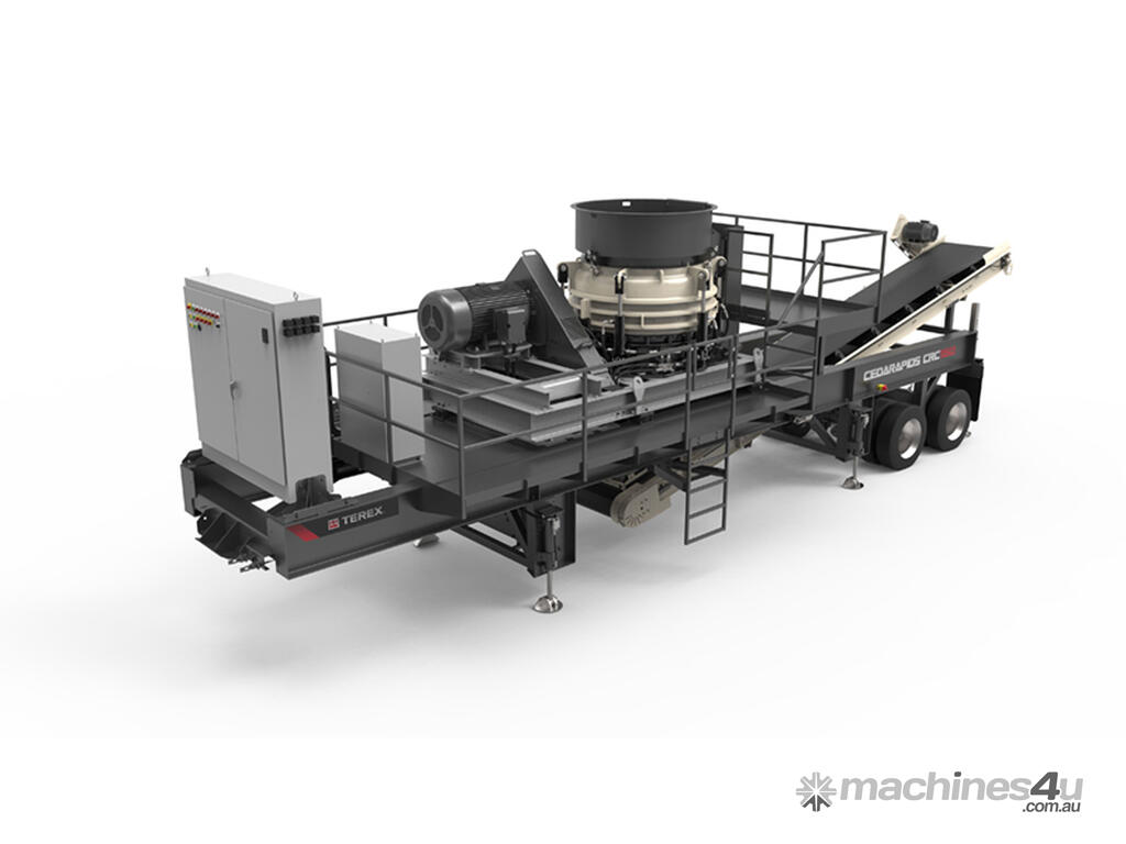 The Cedarapids® CRC1150 cone plant delivers big production at an affordable price. The highly mobile plant features the TC1150 cone crusher that utilizes high efficiency roller bearings and boasts several notable advancements that enhance performance and functionality. Key features include automated cone controls and larger closed side settings. The crusher is powered by a 300 hp (225kW) motor and drive, all mounted on a rubber isolated frame. The plant includes an oversize cone feed hopper extension with overflow chute, “straight-line” undercrusher conveyor, metal detector, and service platforms. Easy maintenance features include conveniently located grease banks and a ground access cone lubrication module.