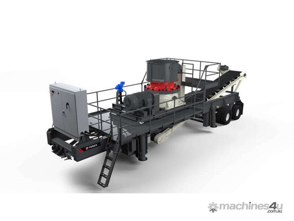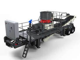 The CRC320 combines the TG320 cone and a 15 hp, 42” wide discharge conveyor on a portable all electric chassis. The crusher is fitted with an overflow chute and removable overflow panel so the overflow can buffer feed surges in a closed circuit application. The trailer width and length allow easy movement from site to site. The plant has a variety of jack options available from simple crank landing to unique patent pending "canted" run-on jacks that stabilizes the movement of the crusher.