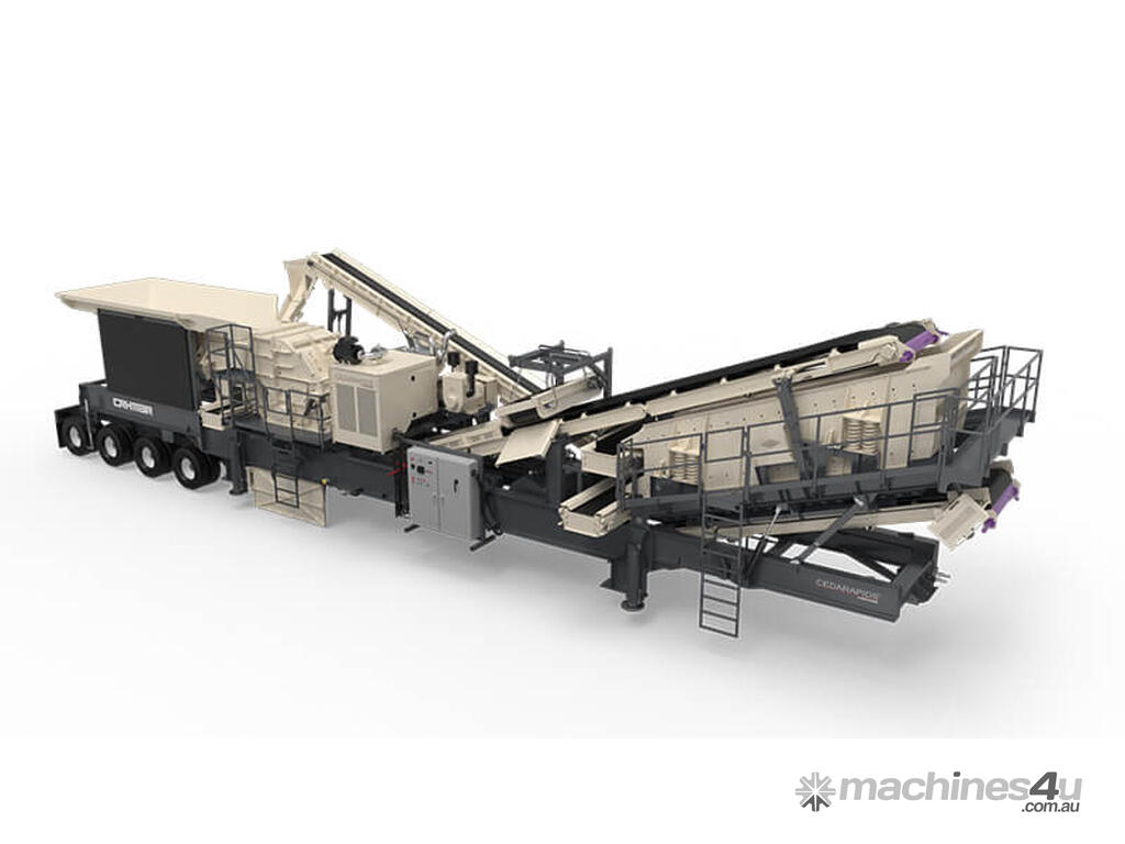 The CRH1113R Portable Closed Circuit Impactor/Screen Plant features the TI4250 impact crusher and a 6x16 2-deck inclined screen. The crusher is hydraulic clutch driven direct from a 450hp Scania diesel. All other components are electric driven from the 150kw generator. With its large screen, wide conveyors, and low maintenance electric driven components, this is a high production, high value plant.