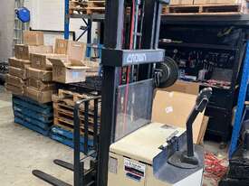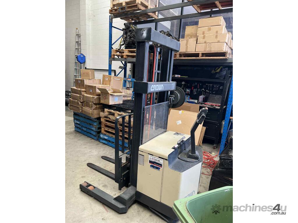Great value from the worlds most trusted forklift - A CROWN 30WRTL 150 Forklift a battery-electric, walkie-reach stacker forklift with a 1500kg (1.5 tonne) lift capacity and a lift height of approximately 3.8 meters. It features reach and tilt functions an designed for indoor warehouse use.