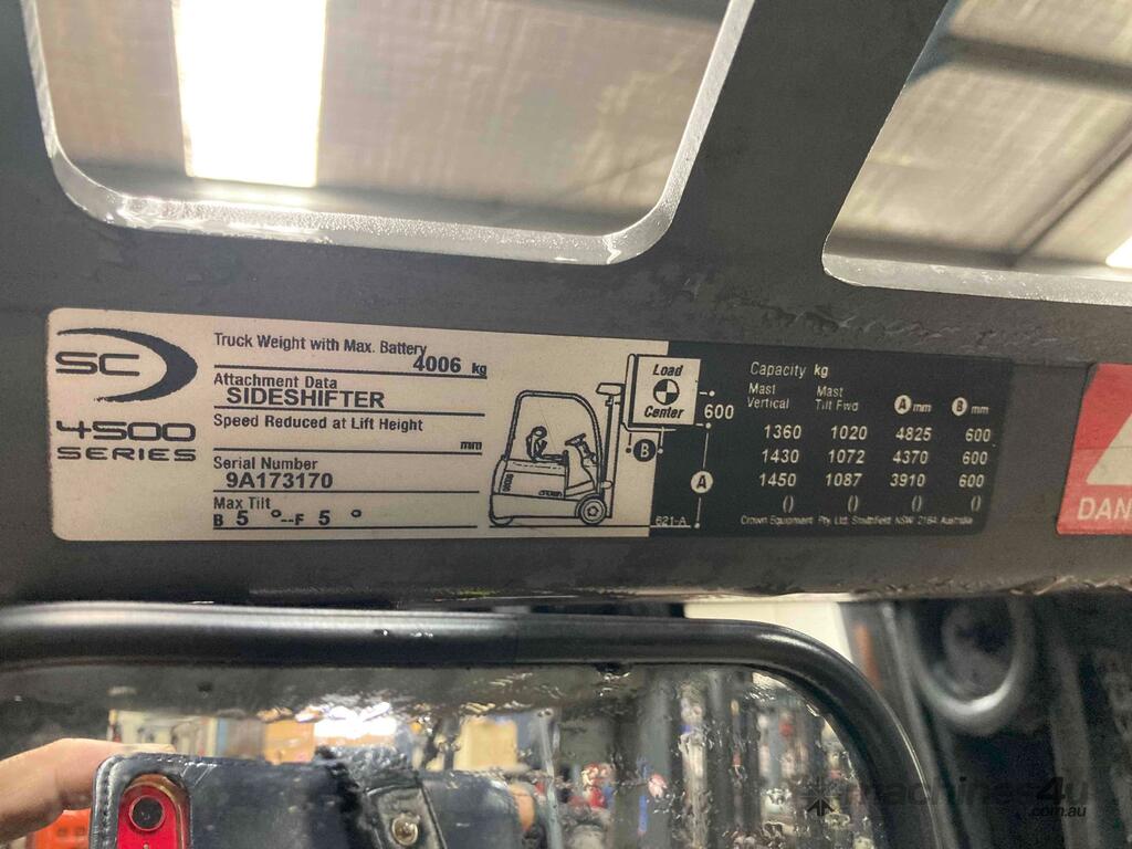 CROWN Late Model SC4500 1.45ton 4.8m Container Mast Side Shift Great Battery :      $7,490 AUD($8,239 Inc. GST)