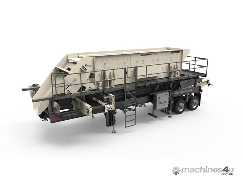 The Cedarapids® CRS620H screen plant features the popular 6' x 20' (1830mm x 6096mm) TSV6203 screen, along with a flex shaft screen drive and roll-away blending chutes, make this a leader in the screen plant market. The wide conveyor belts handle peak load conditions easily. The plant is designed to get the most out of the screen so there is plenty of capacity to make the crushers the bottleneck in the circuit, not the screen.