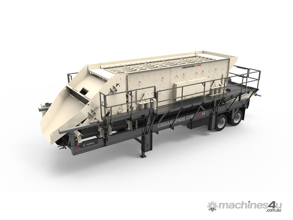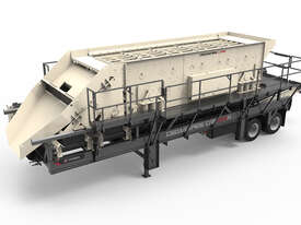 The Cedarapids® CRS820H screen plant features the popular 8' x 20' (2438mm x 6096mm) TSV8203 screen, along with a flex shaft screen drive and roll-away blending chutes, make this a leader in the screen plant market. The wide conveyor belts handle peak load conditions easily. The plant is designed to get the most out of the screen so there is plenty of capacity to make the crushers the bottleneck in the circuit, not the screen.