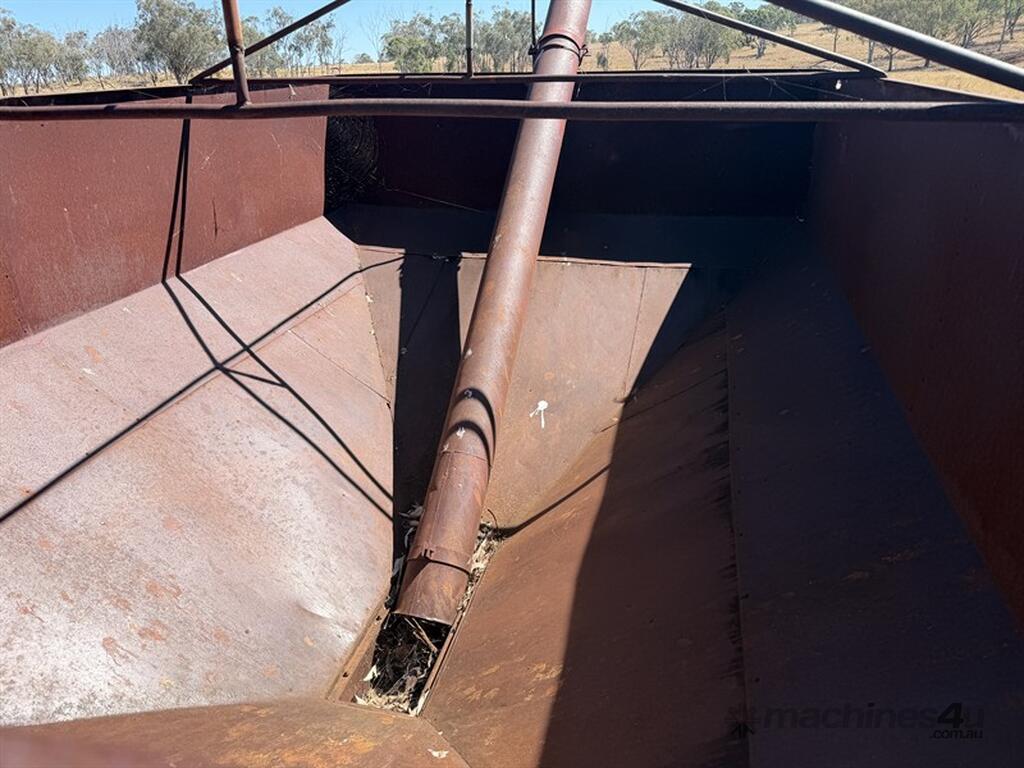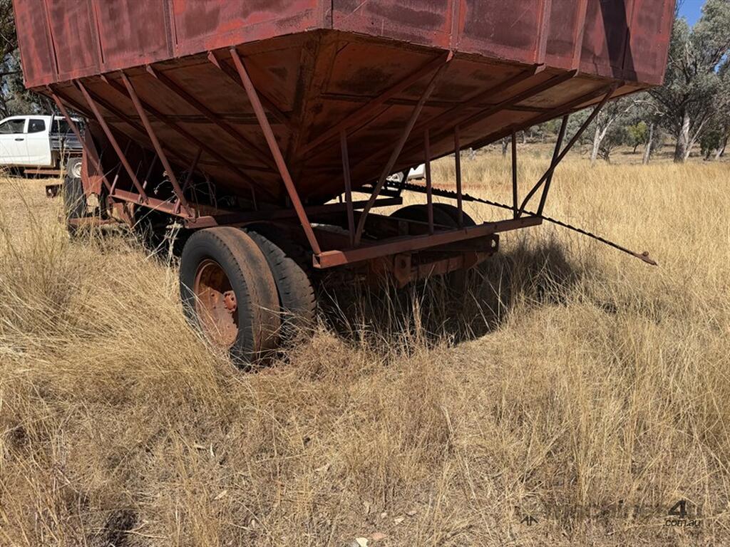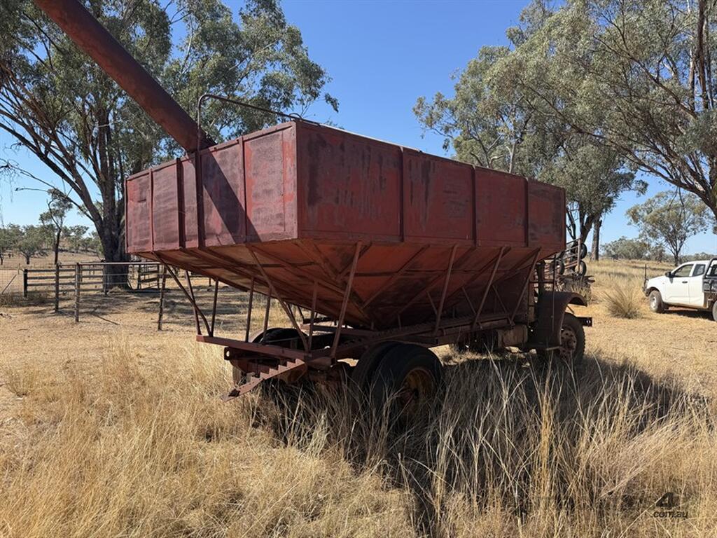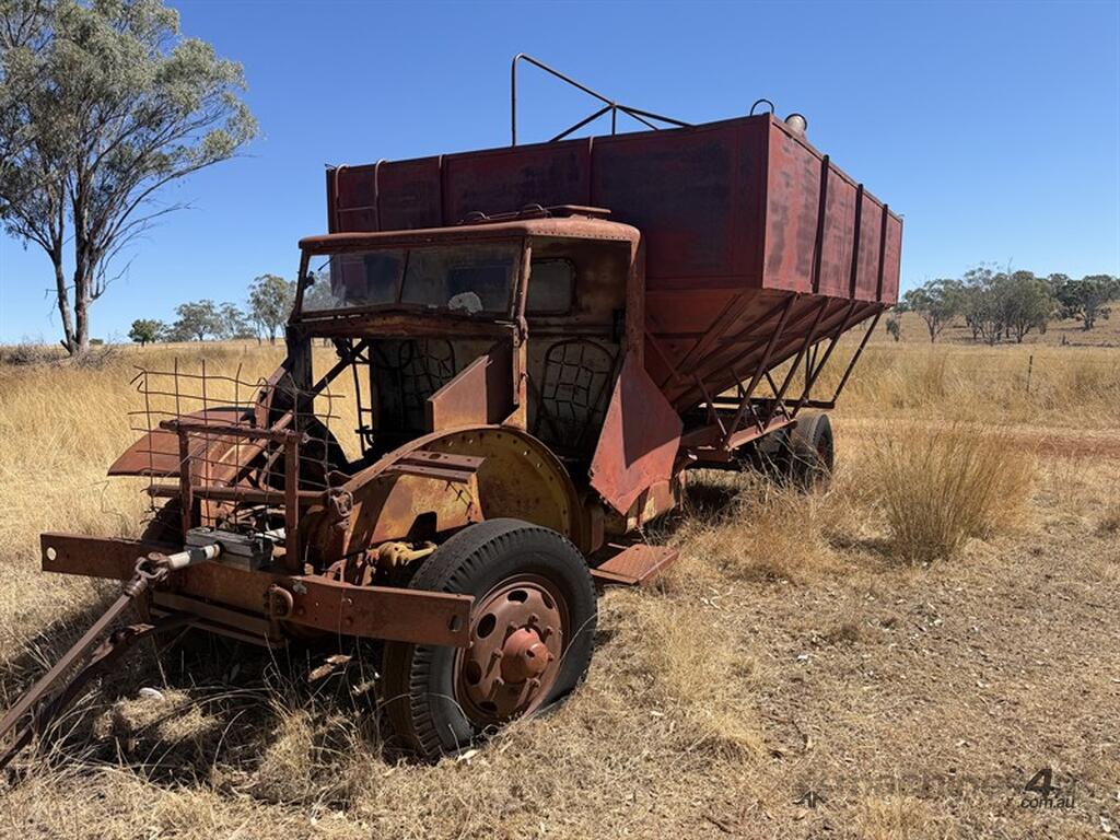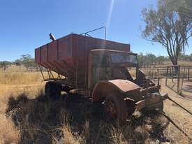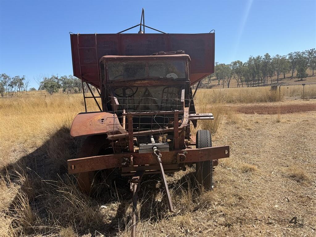 CUSTOM 8T FIELD BIN GRAIN HANDLER - Older truck with bin, converted to field bin, PTO drive, tyres ok, bin ok, holds approx 8T barley, fixed outloading auger. Located Graman NSW. Being offered for sale in SK Symons Genuine Clearance Sale Graman NSW. Contact Sandy Bailey for more