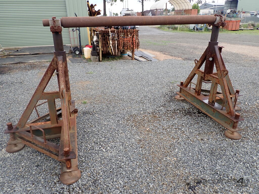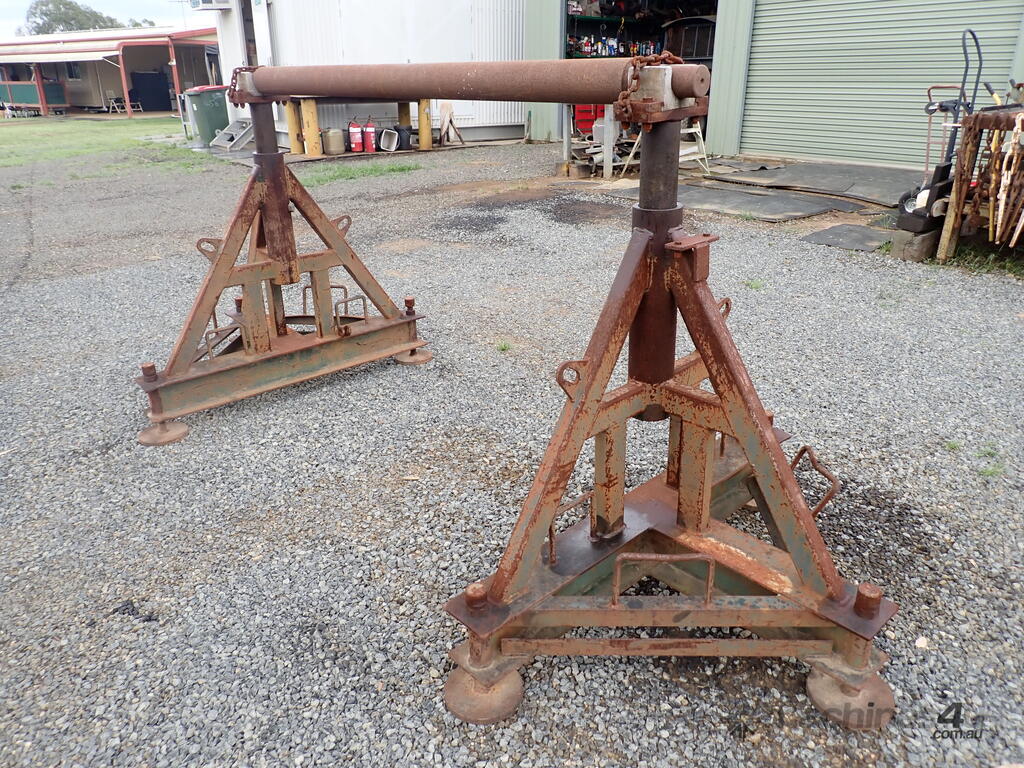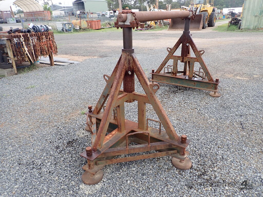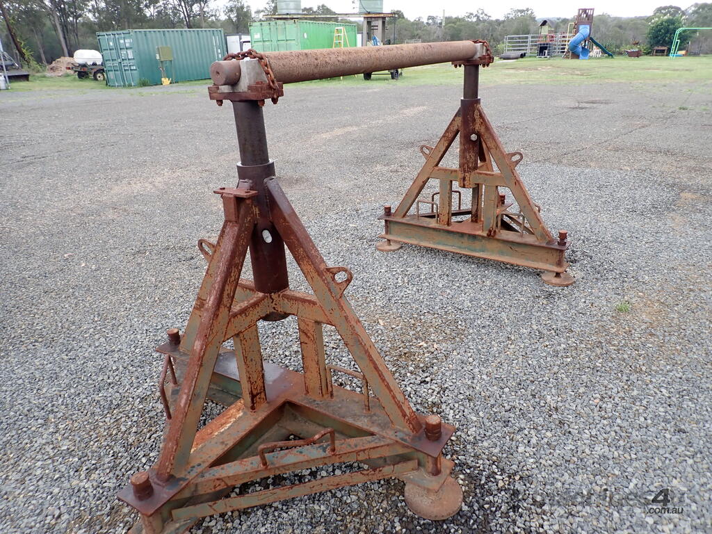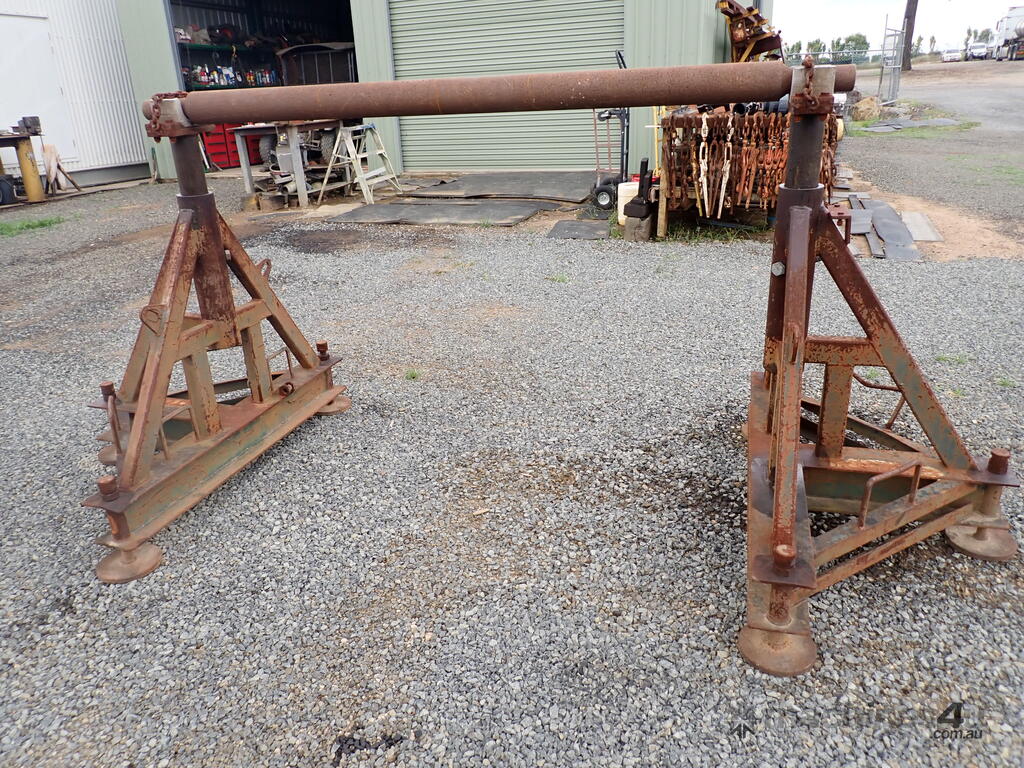 Custom Built cable reel/roll stand, 6 ton maximum capacity, maximum roll width 1800mm and maximum diameter 2600mm, 100mm diameter solid axle, adjustable height heads , adjustable feet for stability, good solid unit in very good condition ready for work.