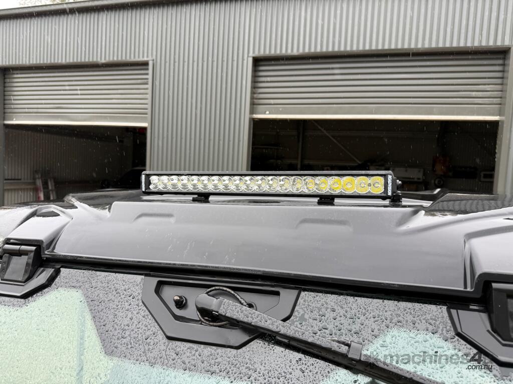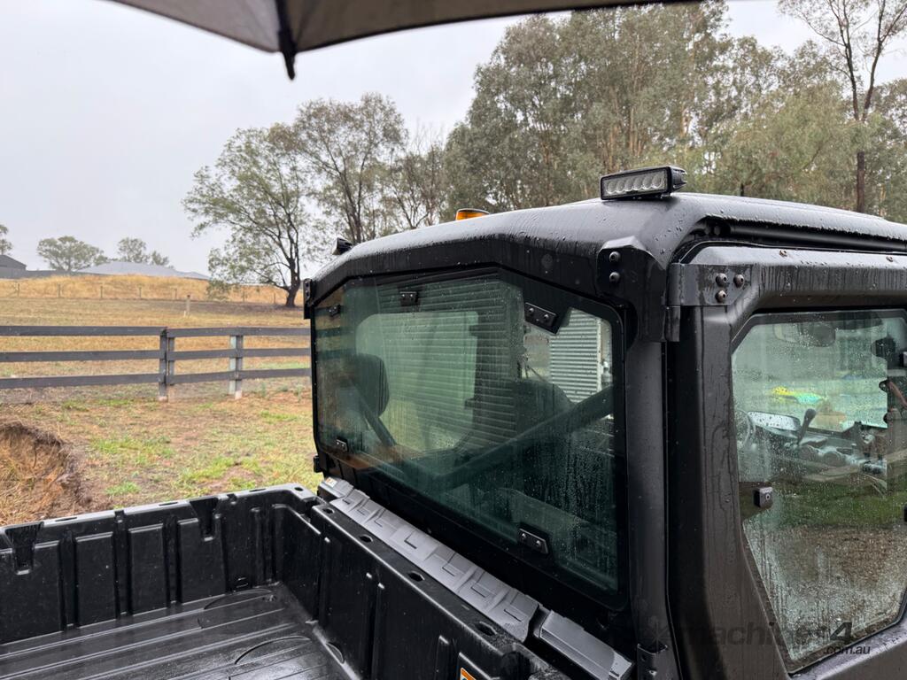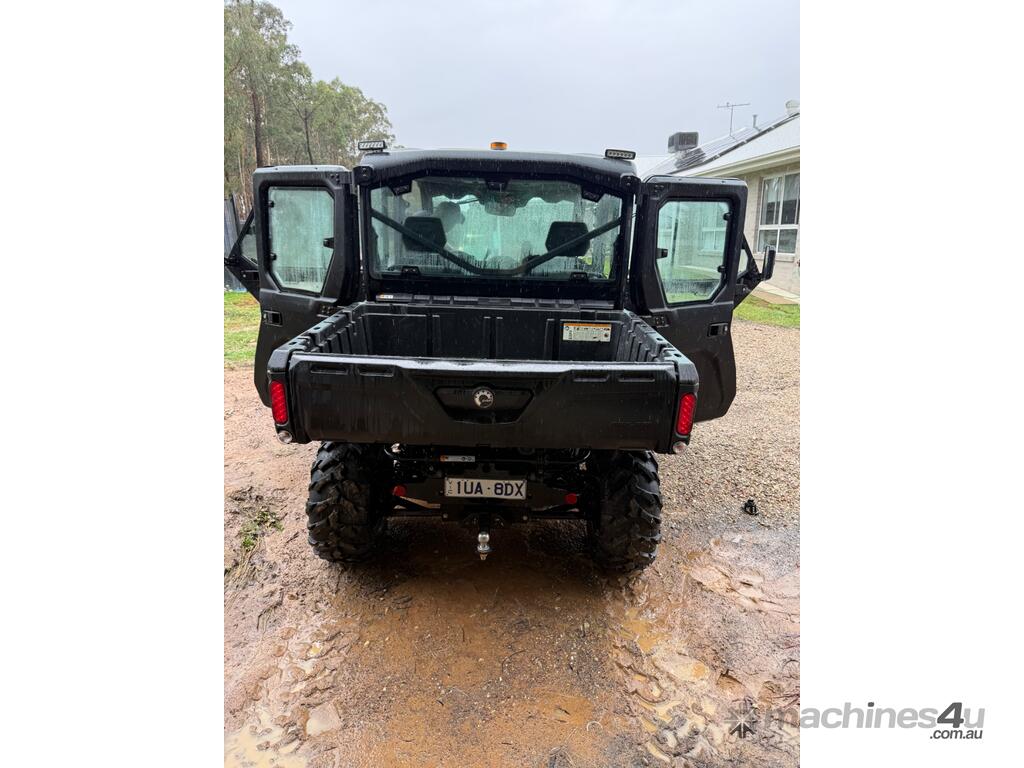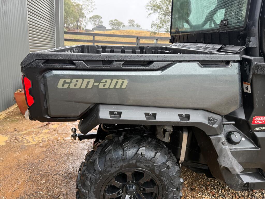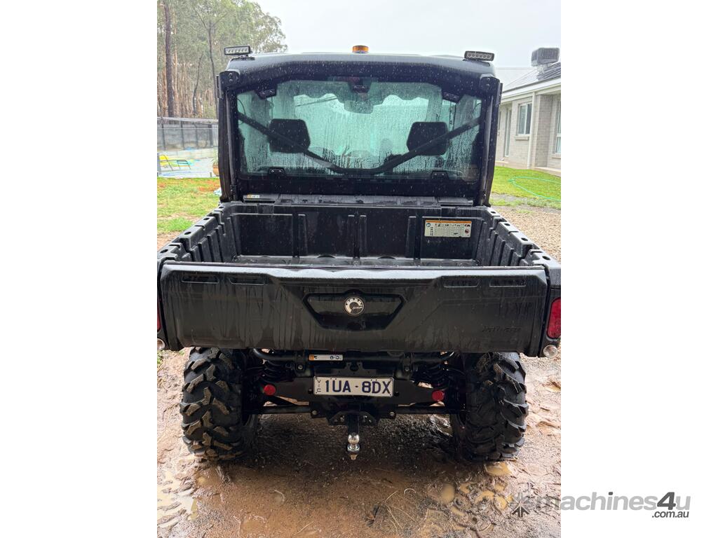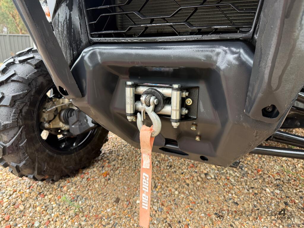 Defender XT HD10, rear differential lock, heated / air conditioned cabin, dust proof insulated cabin, reverse camera, unleaded petrol, 6 seats, canvas seat covers, rear work lights, rotating amber beacon, front light bar, bull bar, winch, genuine Can-Am aftermarket mirrors, tipping tray.