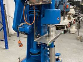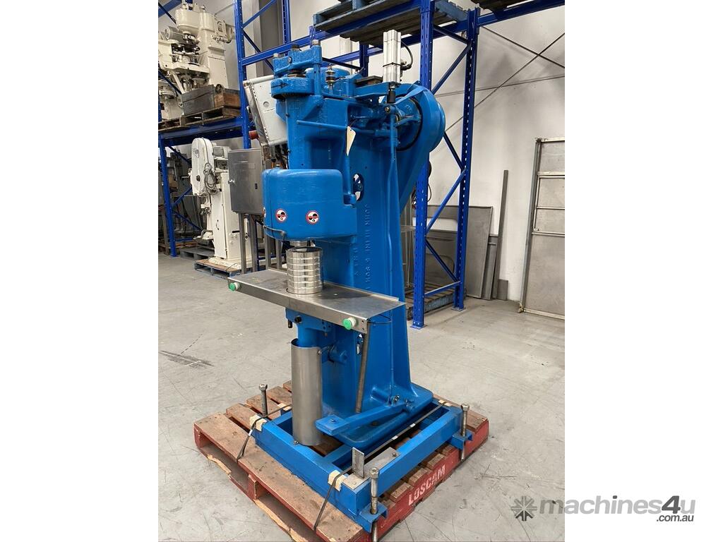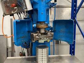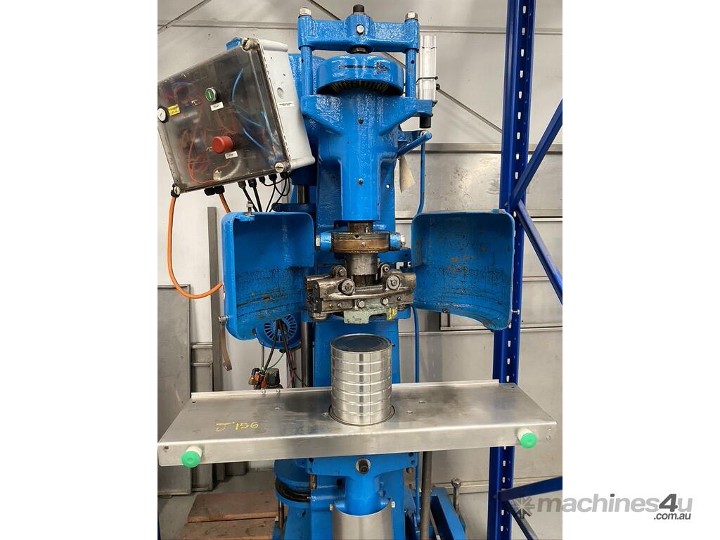 John Heine Can Seamer, Model 85D, Currently setup for a153mm dia can, upgraded to semiautomtic operation complete with 2 button safety start/control system 3 phase power and pneumaticly opetated