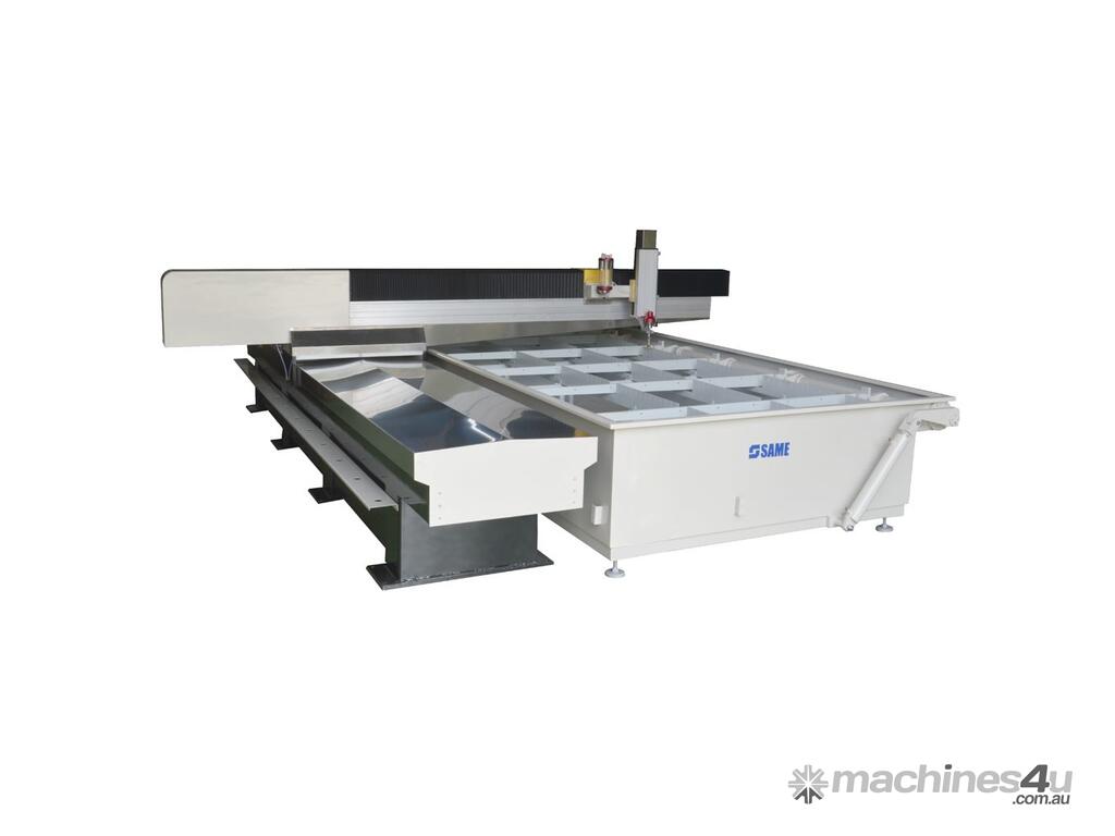 SAME® cantilever type waterjet cutting machine is available in many sizes (1600mm x 1600mm, 2500mm x 1600mm, 3000mm x 2000mm, 4000mm x 2000mm, etc. Customized service is available.)