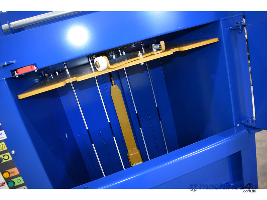 A key advantage of this robust bale press is it’s large feed opening sizes – up to 1m wide boxes can be fed with ease.