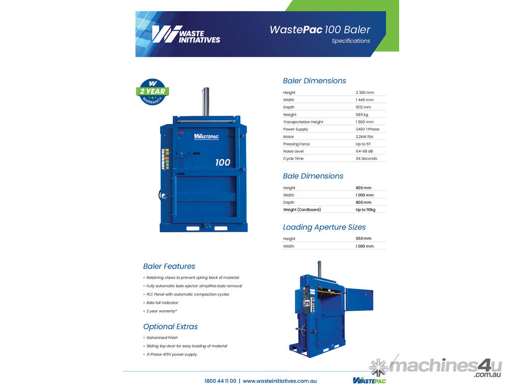 The WastePac 100 Baler is an ideal cardboard compactor for medium-sized grocery stores, warehouses, storage centres and other smaller type establishments. It produces a European pallet-sized bale with ease.