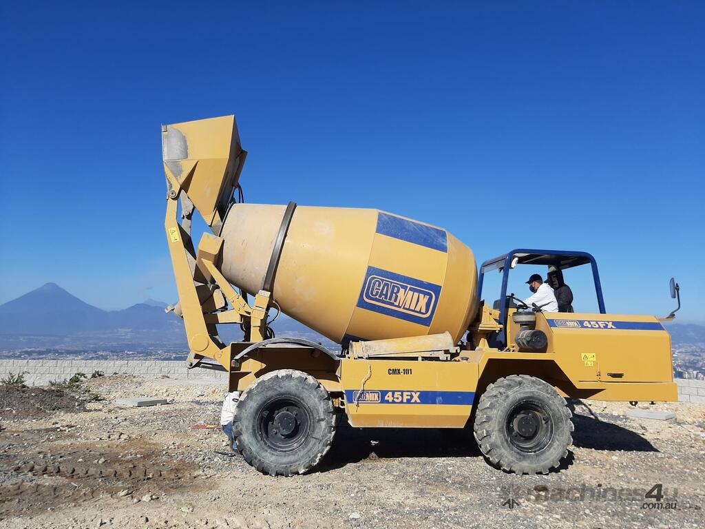The Carmix 45FX is a robust Rear Load Bi-directional steering unit fitted with Load Cells and Weigh Batch System. This unit is capable of travelling fully loaded on rough terrain roads in excess of 30% inclines. The Carmix 45FX can batch 4.0m to 4.2m3 of concrete per load on assumed slump of 80 /100mm.