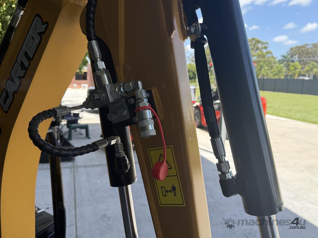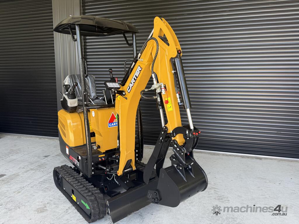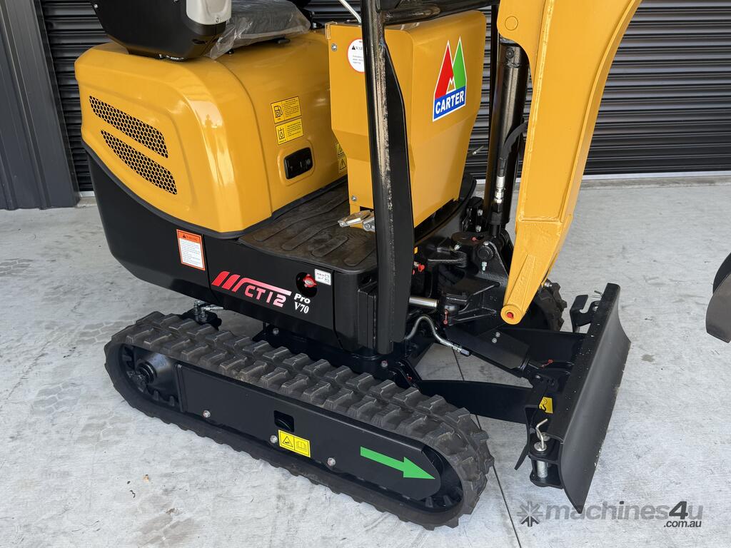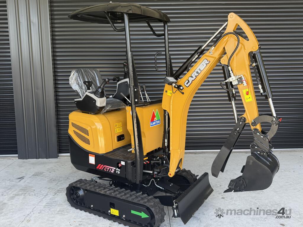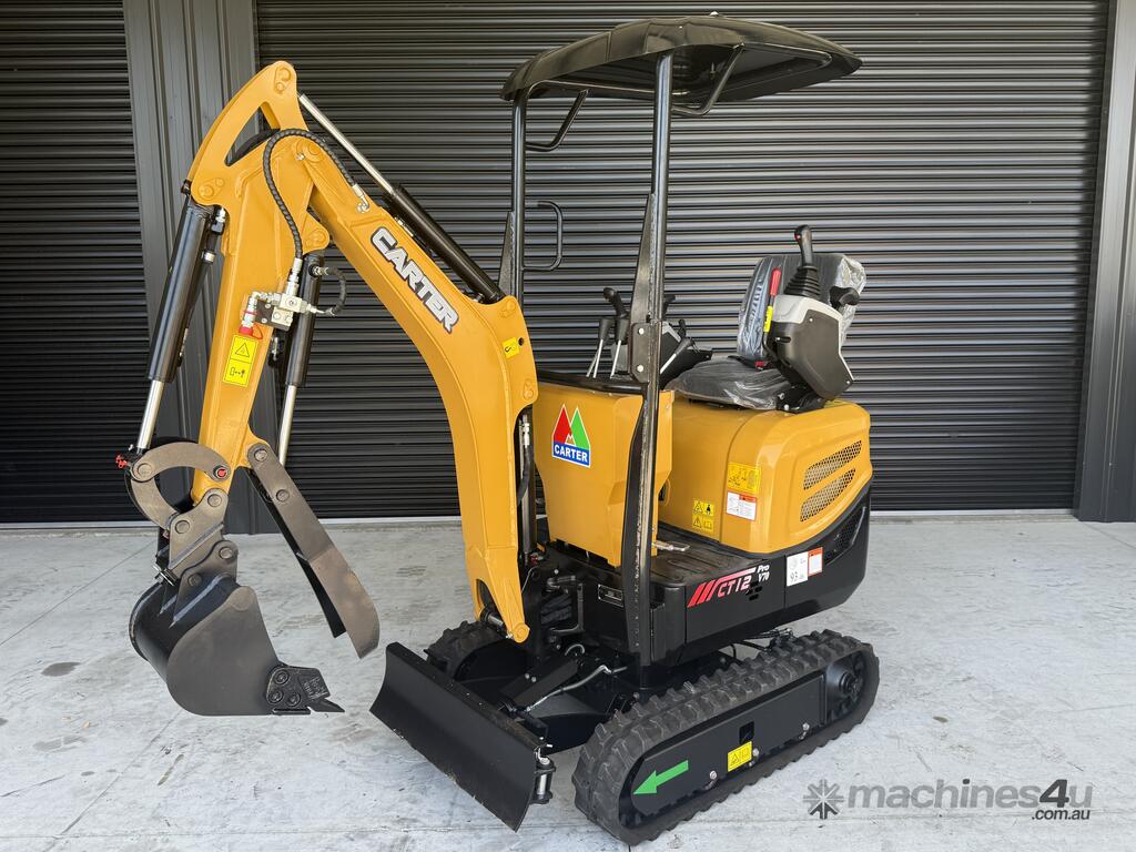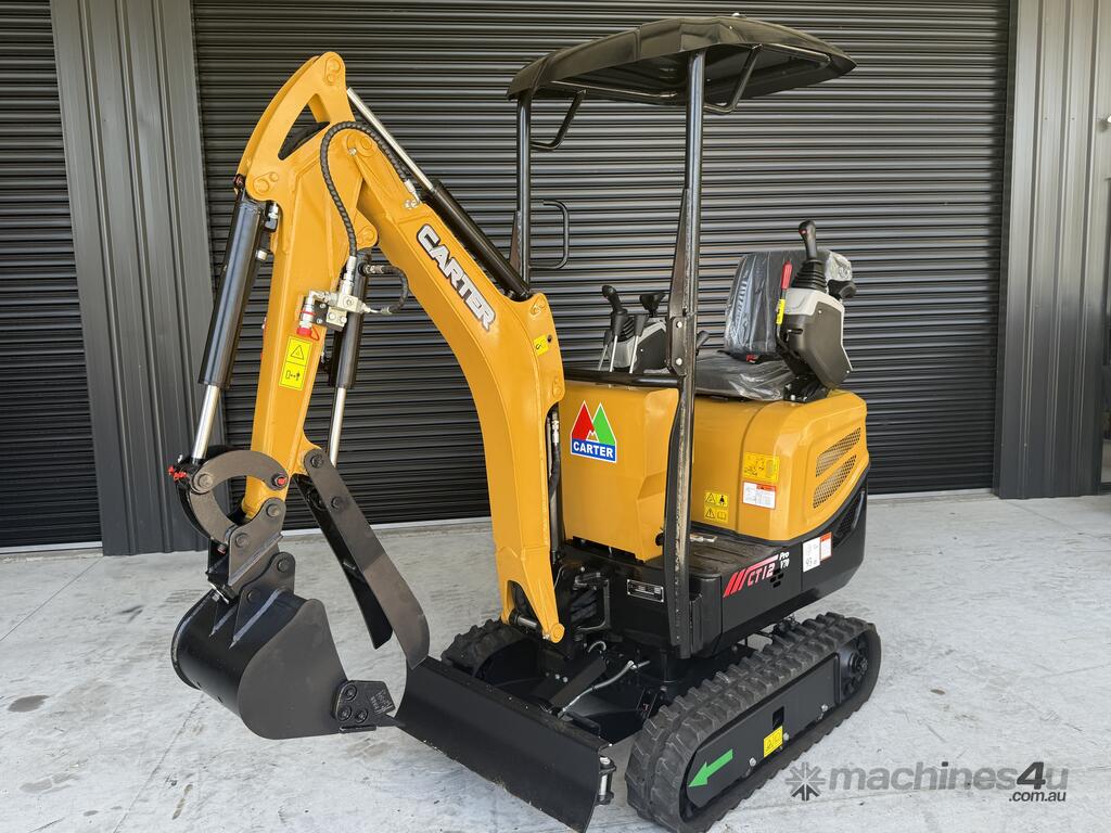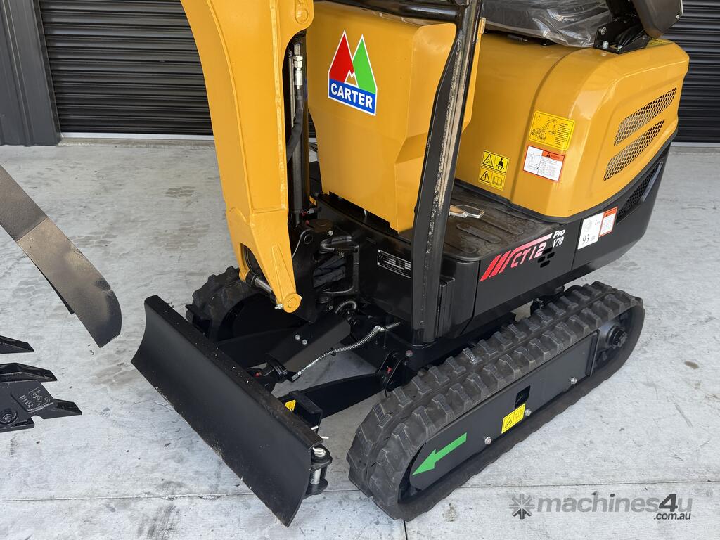 The listing is 1 x Carter CT12 Pro Mini excavator with 10-piece Deluxe Attachment Package - $18,990 incl. GST
