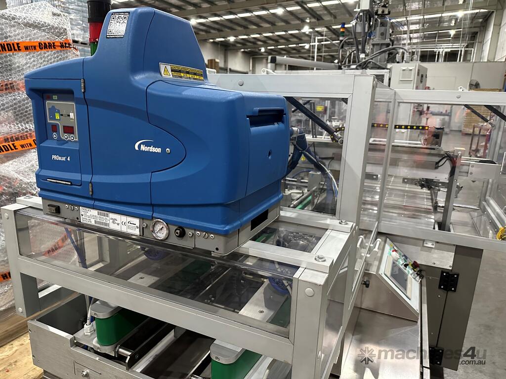 The Nordson Problue hot melt glue unit, 4 is used in packaging machinery for carton forming and sealing. The Problue 4 is used for hot melt gluing in carton forming and sealing processes.