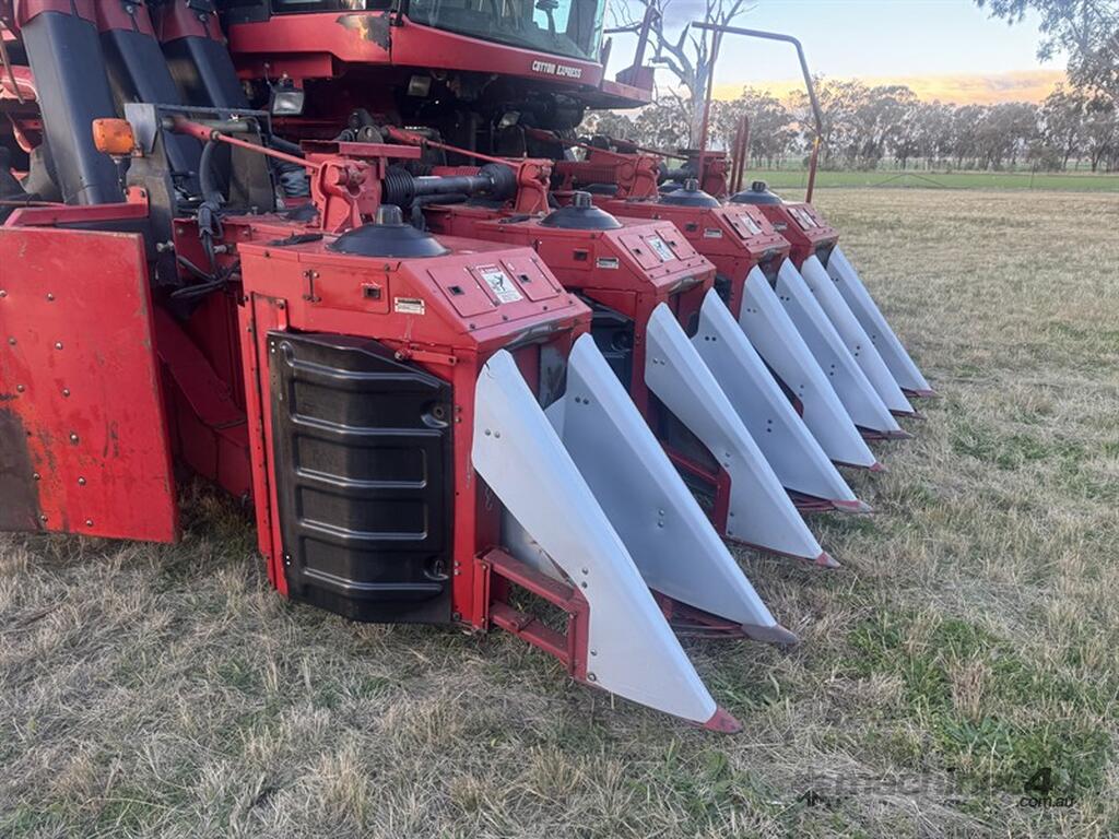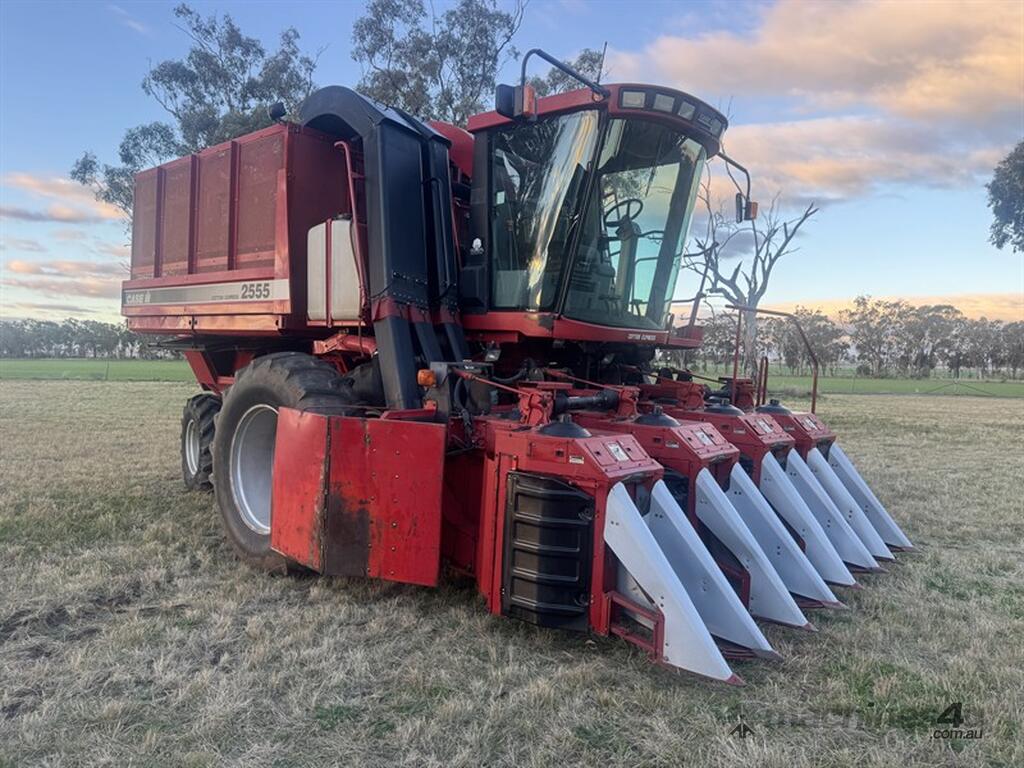 CASE IH 7555 Picker COTTON EQUIPMENT - 1998 Case 7555 picker, 1,801 eng hours, 1,353 fan hrs, has operators manual, log books, service manual. Very tidy picker and low houred for age. 2nd owner. New spindle grease transfer pump, spare heads for parts, includes range of spare parts and filter, always shedded, picked 2022 crop. included with picker and heads is 44 gal drum of grease and grease pump. Located Delungra NSW. Contact Sandy Bailey for more information.