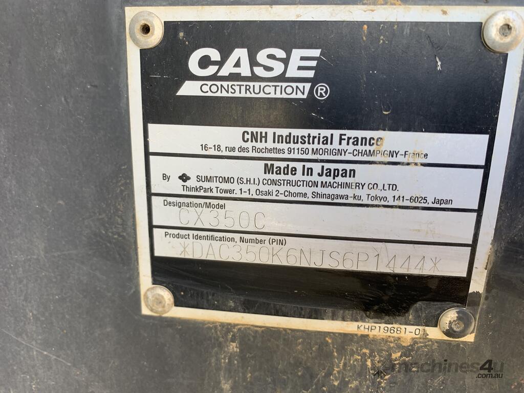 No C/P,Case,CX350B,Excavator,6 Cyl,Diesel,Odometer not visible,7399 (Hrs. Showing on Hour meter),Colour: Orange,Unregistered,VIN: DAC350K6NJS6P1444,Sold with No Plates