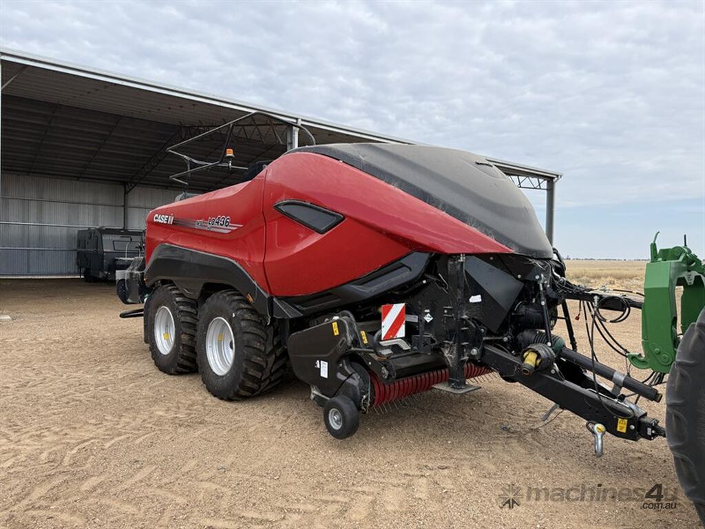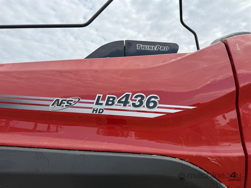 Case IH LB436HD Baler. 8,697 bales made, 155 hours. TwinePro model, ISOBUS Class 3 integrated automation with in-cab display control (e.g., AFS Pro 700), Recommended Tractor PTO Power: 250 hp, Pickup Width: 2,352 mm. Bales are 8/4/3 high density. In very good working order, selling due to change in direction. Always kept in shed. Located at Pallamallawa NSW, available at MRE Auction online sale.