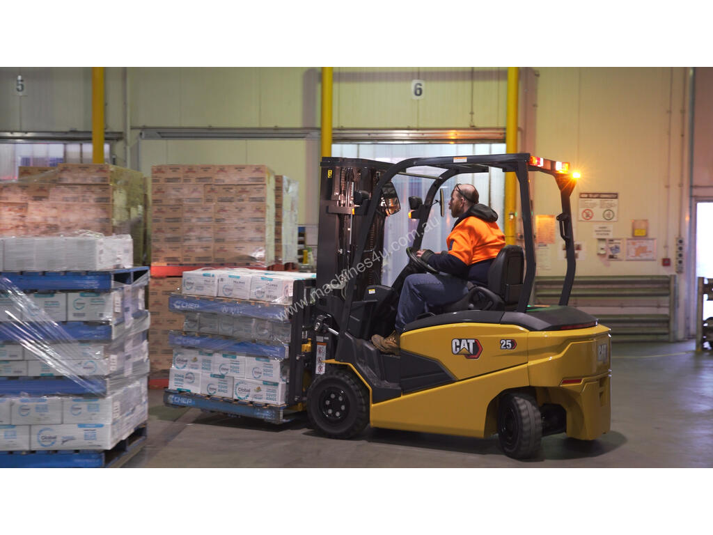 The Cat 2.5T 4-wheel electric forklift is stylish and modern in design. This versatile forklift covers everything from light and medium warehouse duties to outdoor tasks in the rain, thanks to its IPX4 waterproofing.