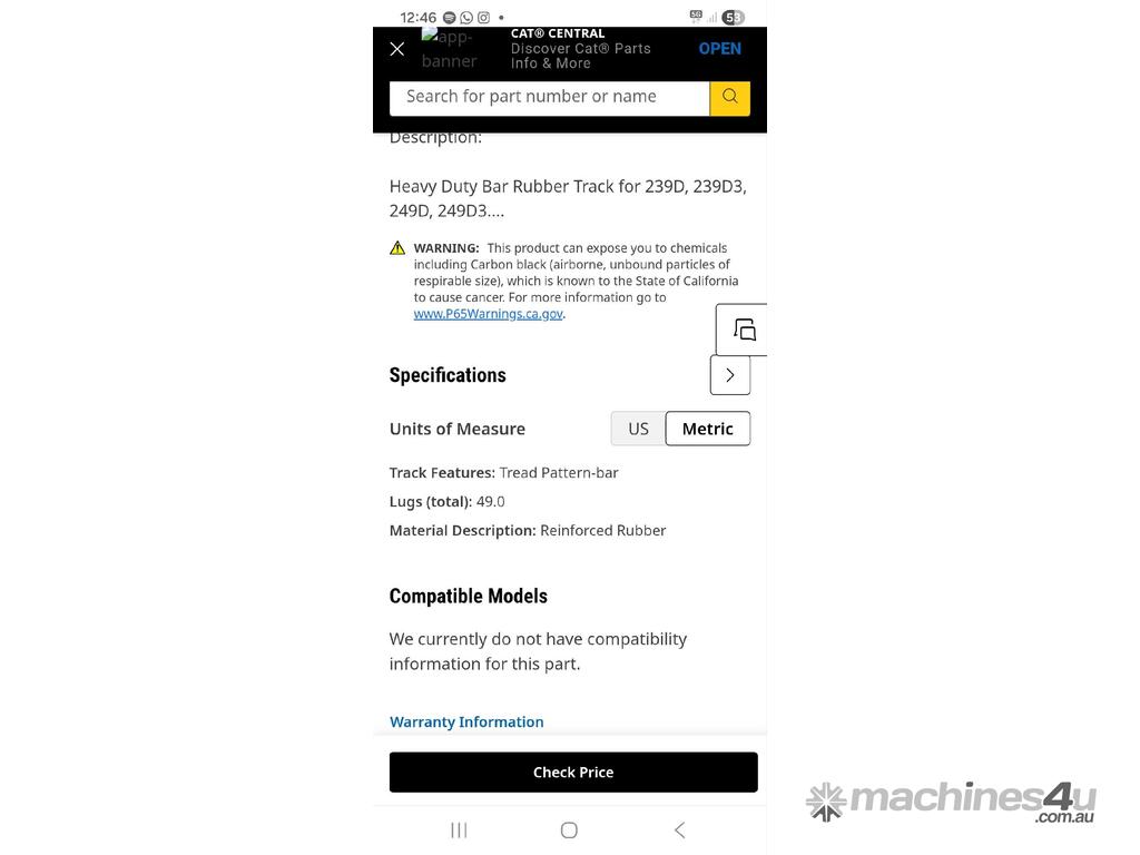 Caterpillar 239D / 249D skid steer loader tracks :      $2,500 AUD($2,750 Inc. GST)