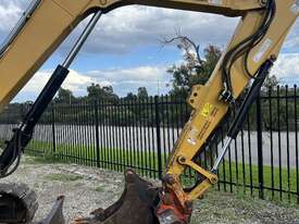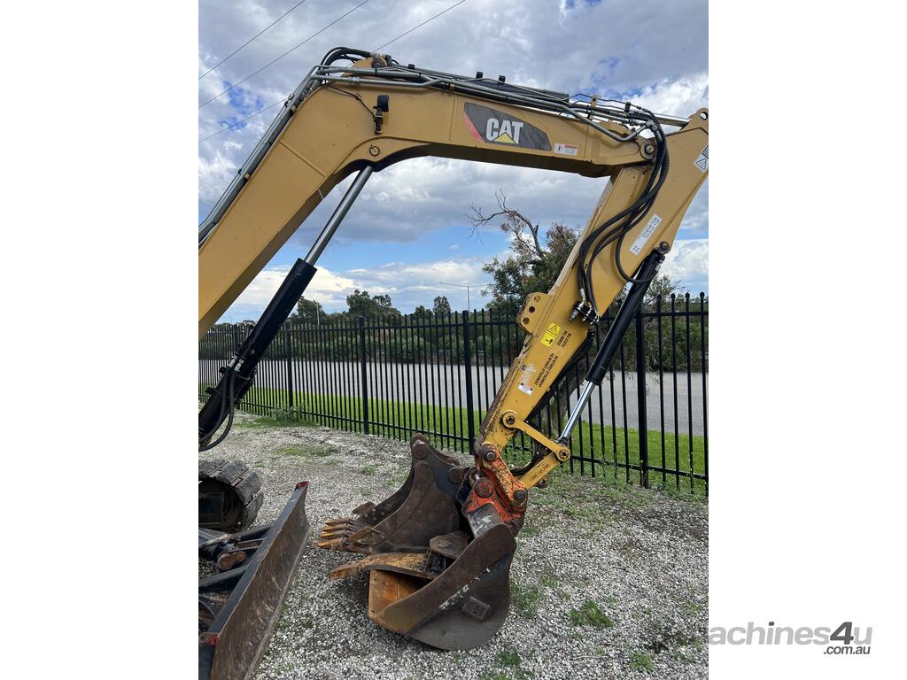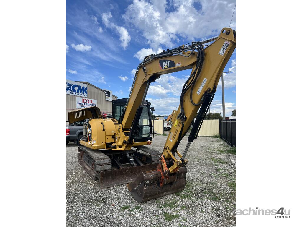 This CAT 308 - 8T mini excavator is a practical, well-set-up machine that's been working in the civil and plumbing industry. It comes with an enclosed cab, steel tracks with rubber pads, and is fitted with multiple auxiliary hydraulic lines giving you good versatility with attachments.