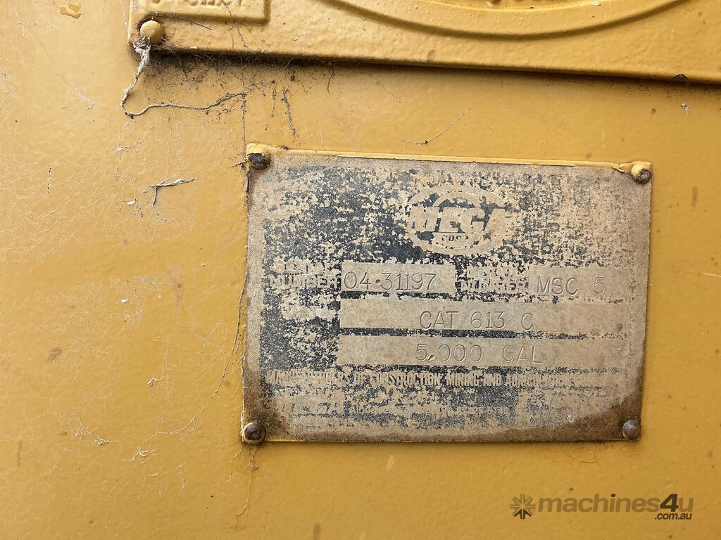 CP: CIRCA null,Caterpillar,613C,Articulated Water Cart,6 Cyl,Diesel,Turbo,Odometer not visible,3767 (Hrs. Showing on Hour meter),Colour: Yellow,Unregistered NSW,Serial No: 8LJ02722,ROPS No: undefined,FOPS No: undefined,Sold with No Plates,WOVR Status: WOVR N/A,Incident Type: Impact