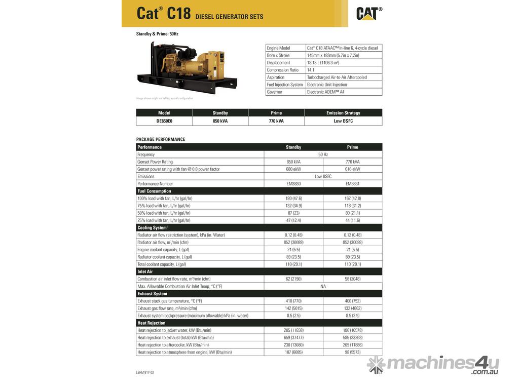Model: C18 Generator Set (DE850E0)