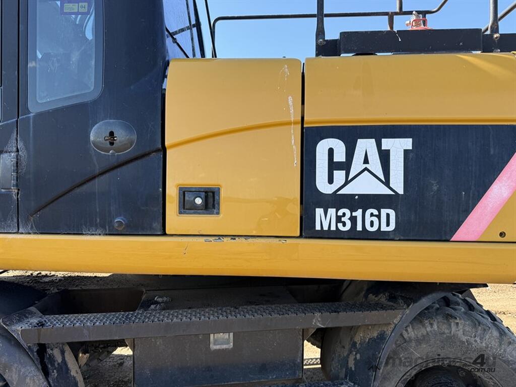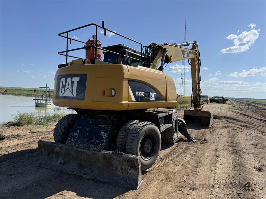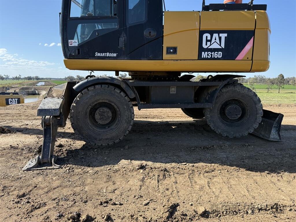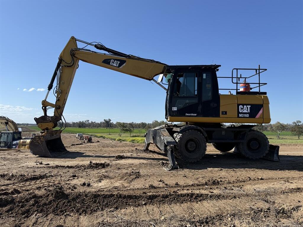 Caterpillar M316D Wheel Excavator. Cat C6.6 ACERT motor, 166hp, smartboom, tilting bucket, 13,797 engine hours. Machine was still in use and may have some more hours on advertised hours come the auction. Located west of Moree NSW, available at MRE Auctions online sale.