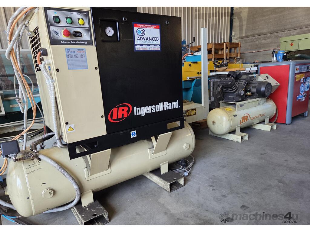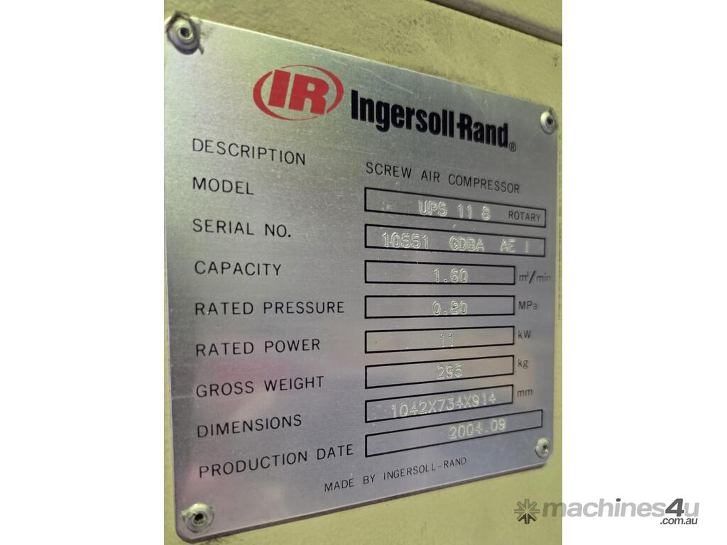 8). INGERSOLL RAND UP 11kw 15hp 415v 8 BAR 65CFM 2in1 ROTARY SCREW COMPRESSOR BASE Year 2004 MADE IN ITALY MOUNTED ON 350 LITRE AIR RECEIVER TANK, GENUINE 2,104 RUN HOURS, HEAVY DUTY. REQUEST BROCHURE.