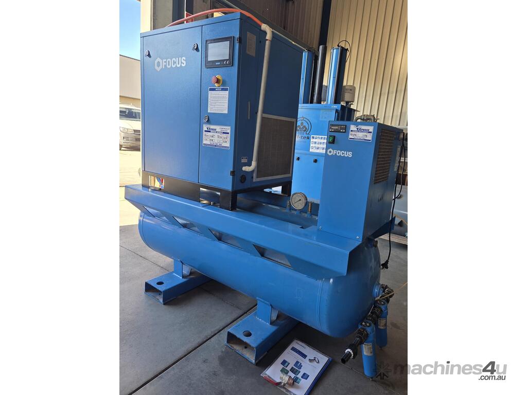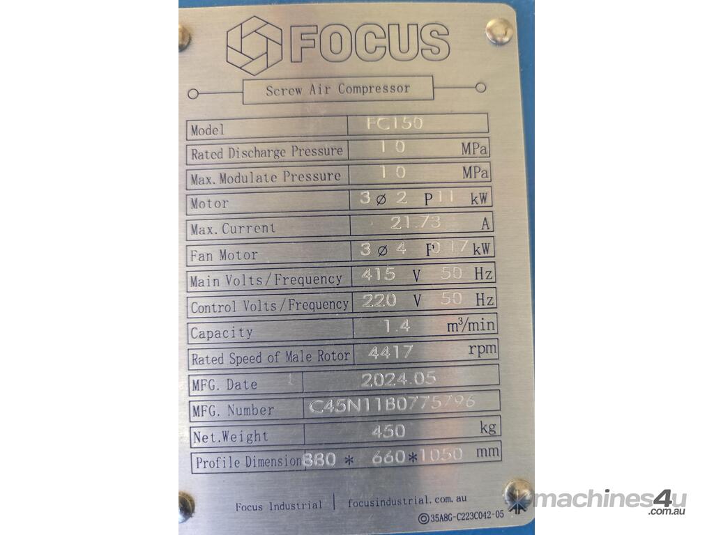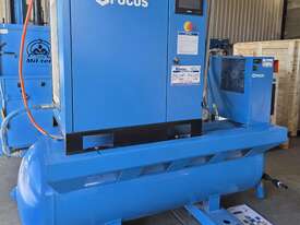 1). FOCUS CHEIFTAN FC150-50D 11kw 15hp 415v 10 BAR 3-IN-1 FULLY-FEATURED ROTARY SCREW COMPRESSOR Year 5/2024 INCLUDING BUILT-IN REFRIGERATED AIR DRYER / FILTERS MOUNTED ON 500 LITRE AIR RECEIVER AIR TANK. VERY LOW RUN HOURS (BELOW 2,900 HOURS). AS NEW CURRENT MODEL / BALANCE OF WARRANTY.