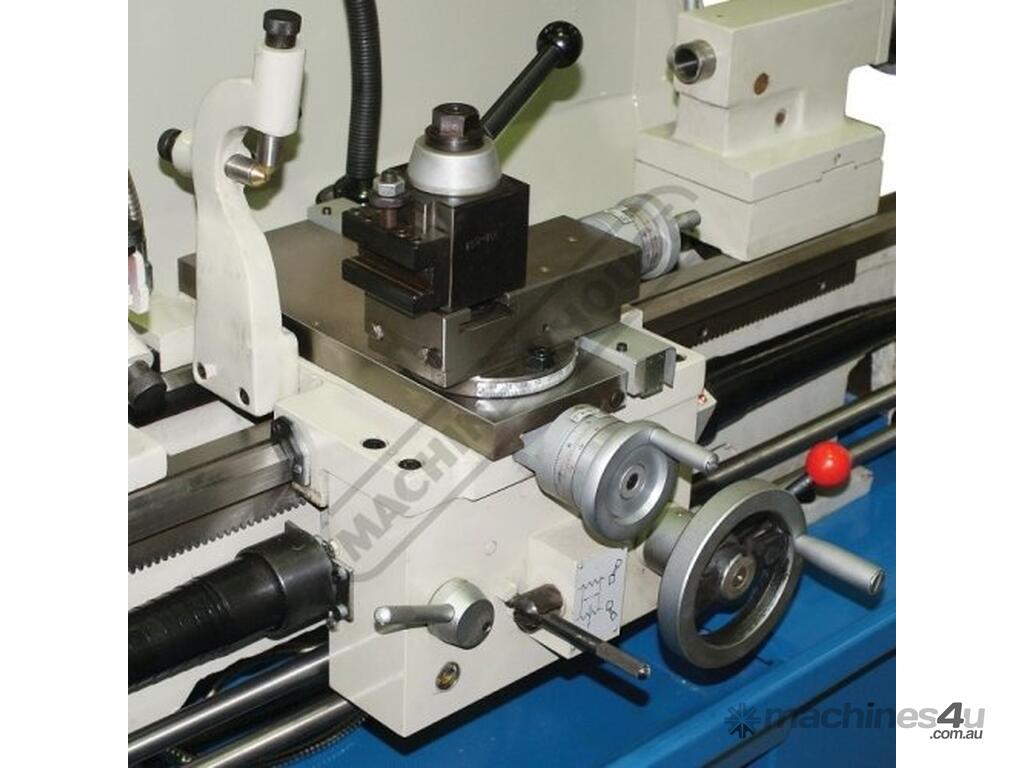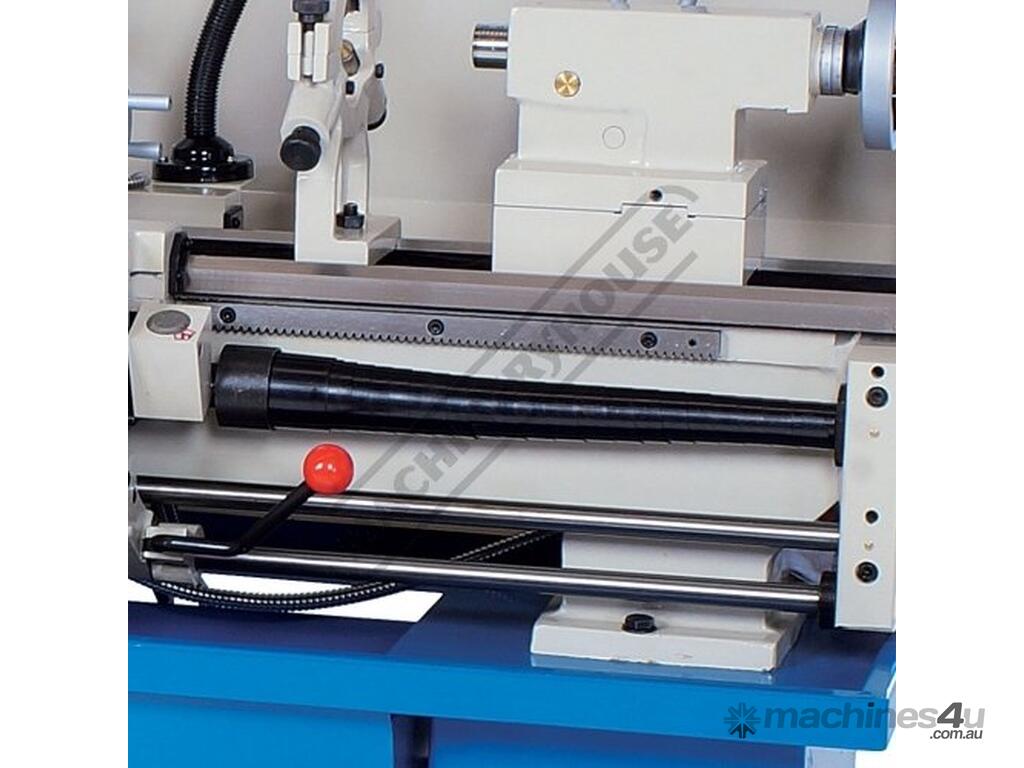 The 2hp single phase 240V motor is ample power to drive the 3 & 4 jaw chucks, auto feed & screw cutting thread system and the adjustable taper roller spindle bearings ensures accuracy & smooth operation even when under cutting load. A great range of cross, longitudinal feed speeds & metric & imperial screw cutting threads are easy accessible & selected via the separate gearbox located underneath the headstock for your convenience.