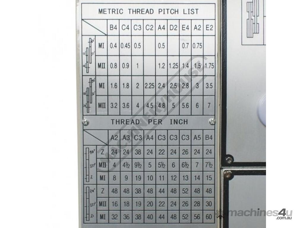 The 2hp single phase 240V motor is ample power to drive the 3 & 4 jaw chucks, auto feed & screw cutting thread system and the adjustable taper roller spindle bearings ensures accuracy & smooth operation even when under cutting load. A great range of cross, longitudinal feed speeds & metric & imperial screw cutting threads are easy accessible & selected via the separate gearbox located underneath the headstock for your convenience.