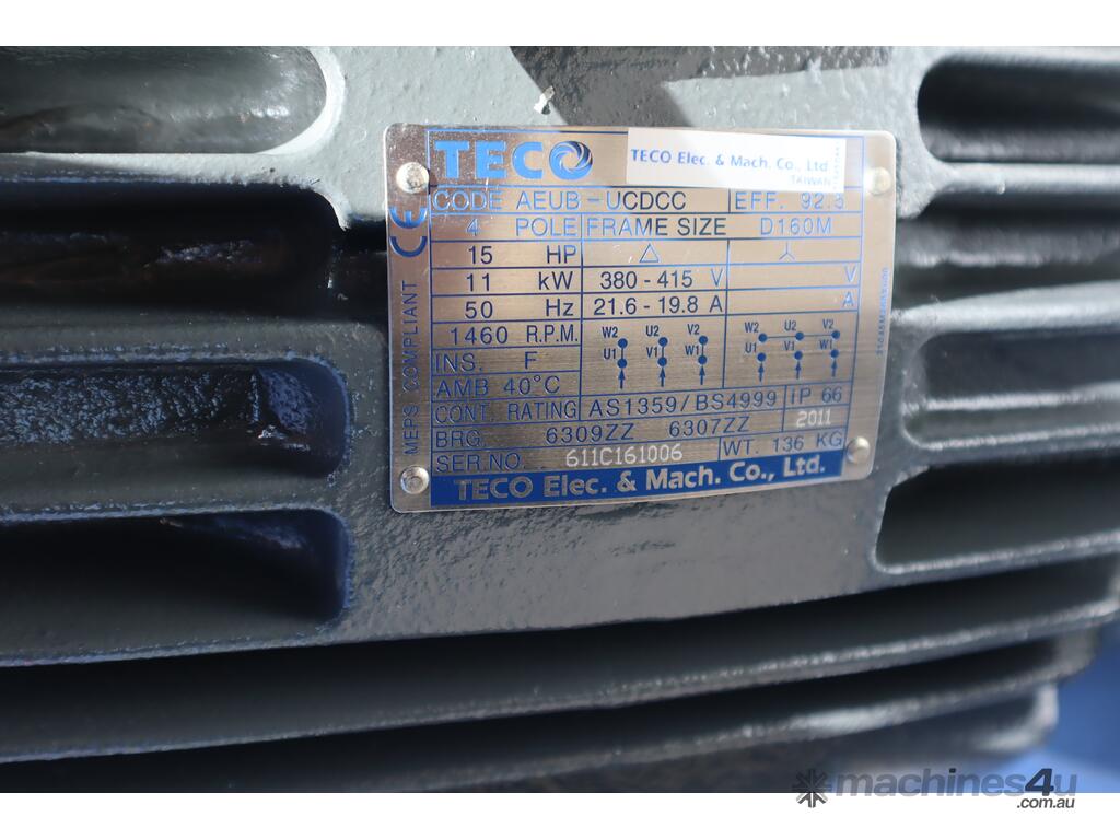 Driven by a Teco 11kW 3 Phase motor.