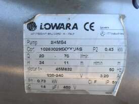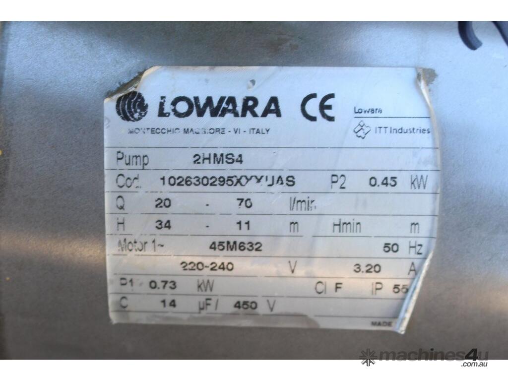 Centrifugal Pump, "Lowara" model 2HMS4, capacity 70L/min, 30mm inlet and outlet, driven by single phase 0.45kw motor