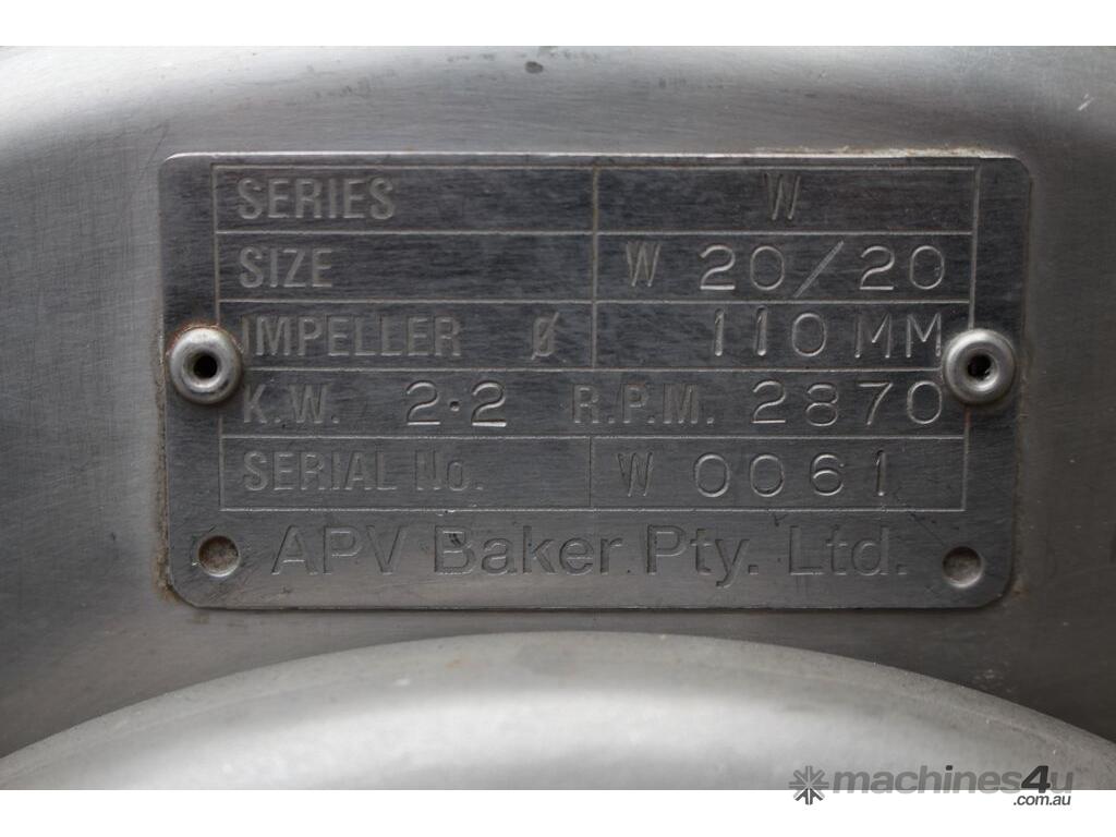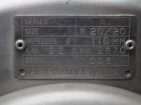 Centrifugal Pump, "APV", Type W20/20, W series, S/N W0061, 50mm dia inlet and 32mm dia outlet (flared up to a 50mm connection), 110mm dia impeller driven by a 2.2kw 3 phase motor (2870rpm)