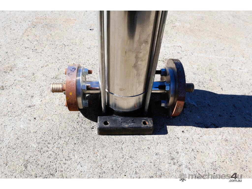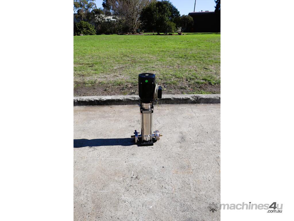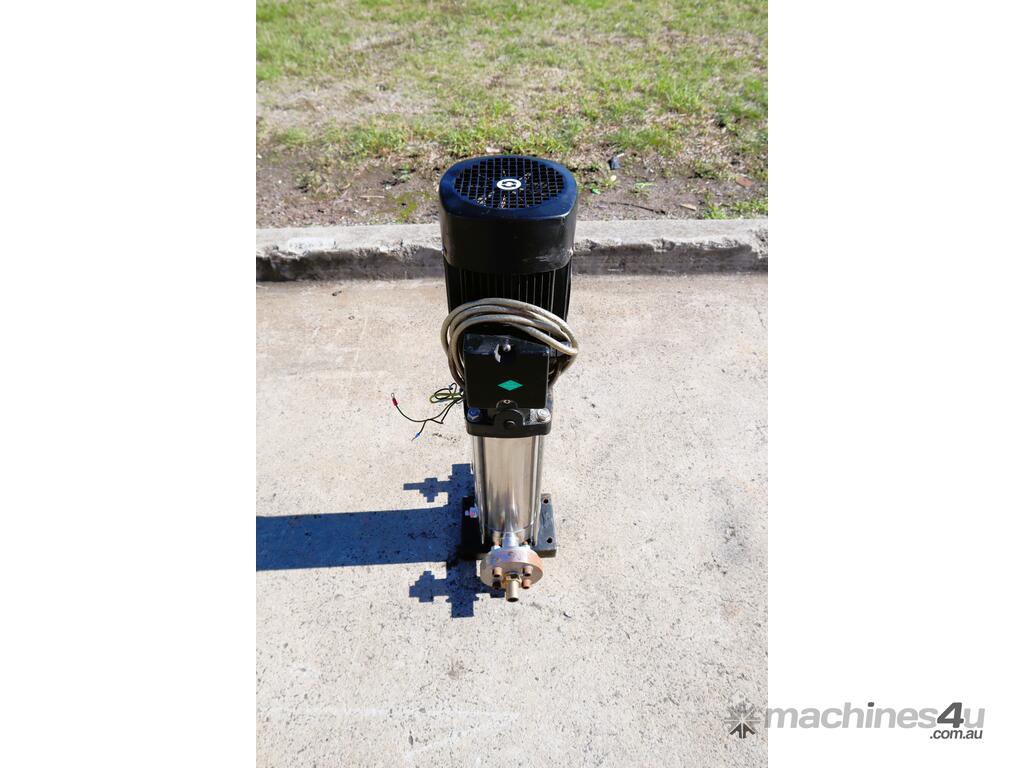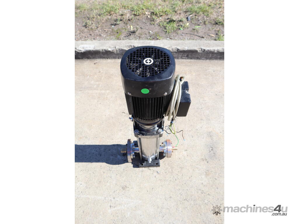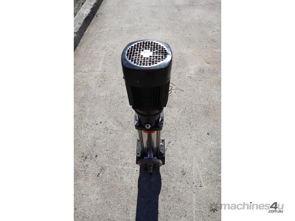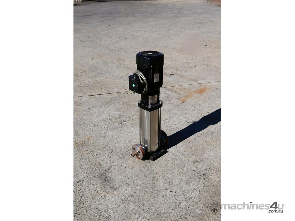 Vertical in-line multistage centrifugal pump with stainless steel hydraulic parts.