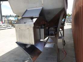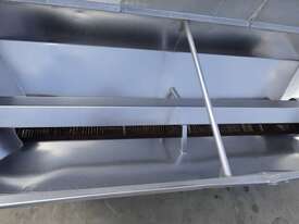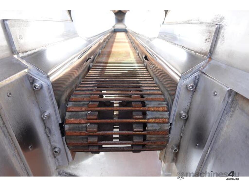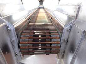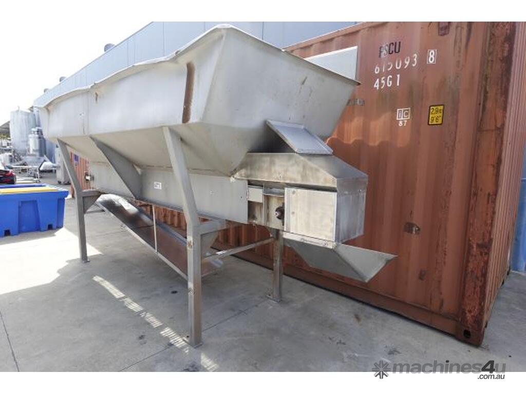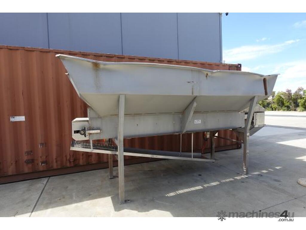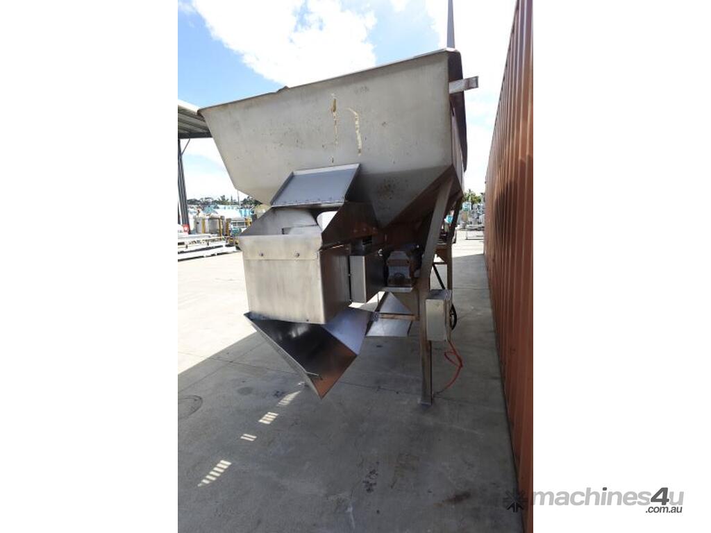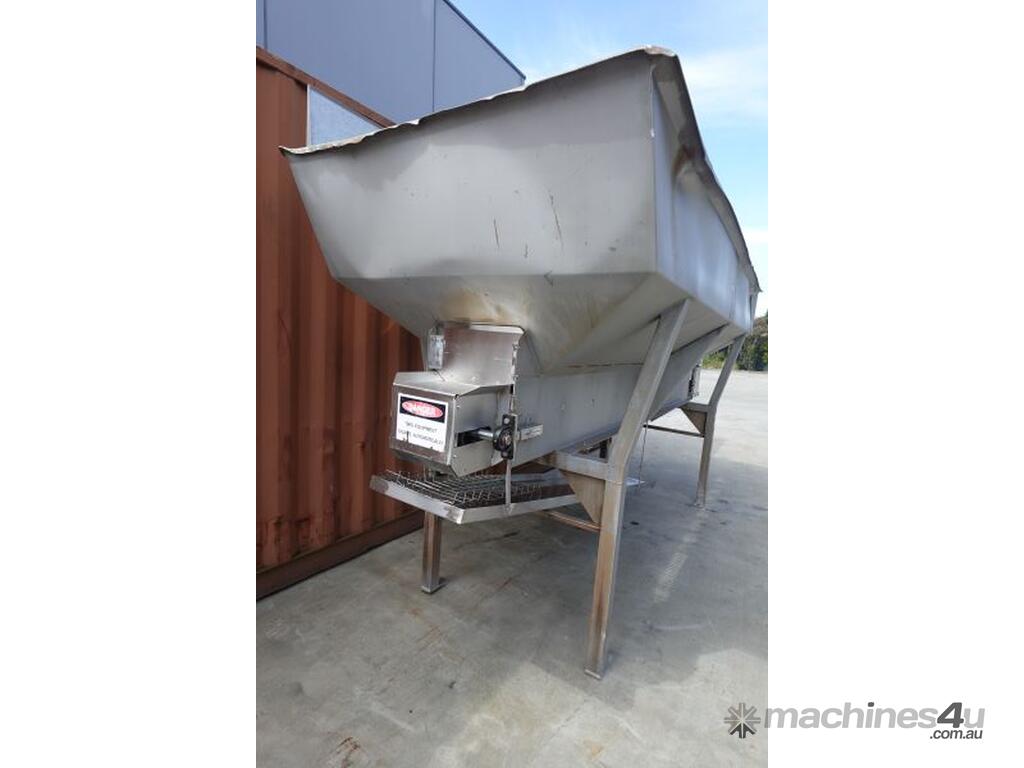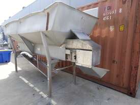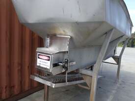 Unit is a stainless steel hopper with live bottom chain conveyor.