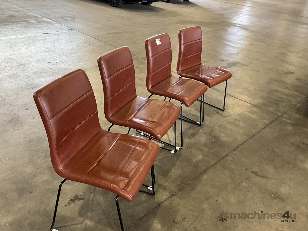 4x High Back Tan PU Leather Chairs, Colour Tan, Good Condition, May Have Cracks & Wear