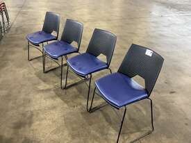 4x Chairs With Cushion Base, Colour: Black & Blue, Good Condition, May Have Chips, Scratches & Wear Marks